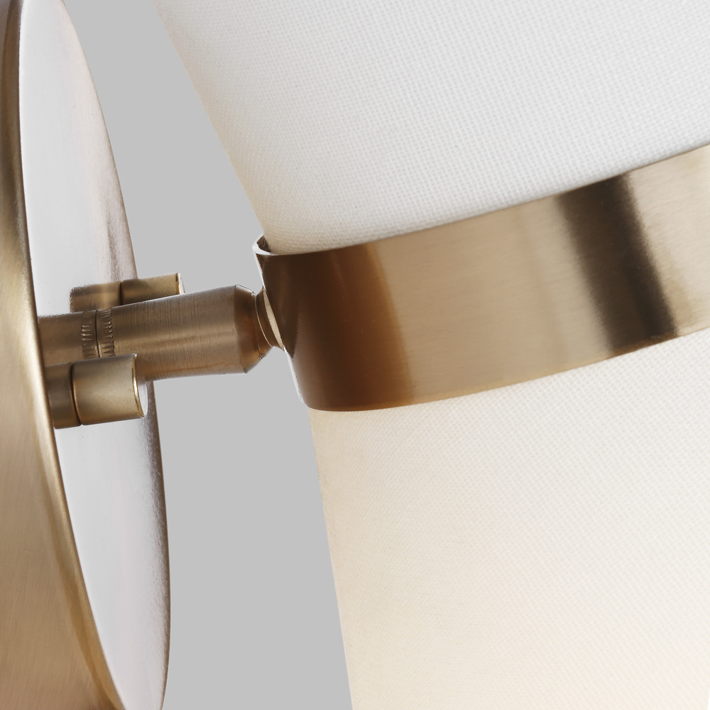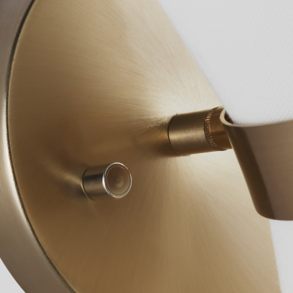 The Clark one light wall sconce in satin brass offers shadow-free lighting in your powder room, spa, or master bath room.