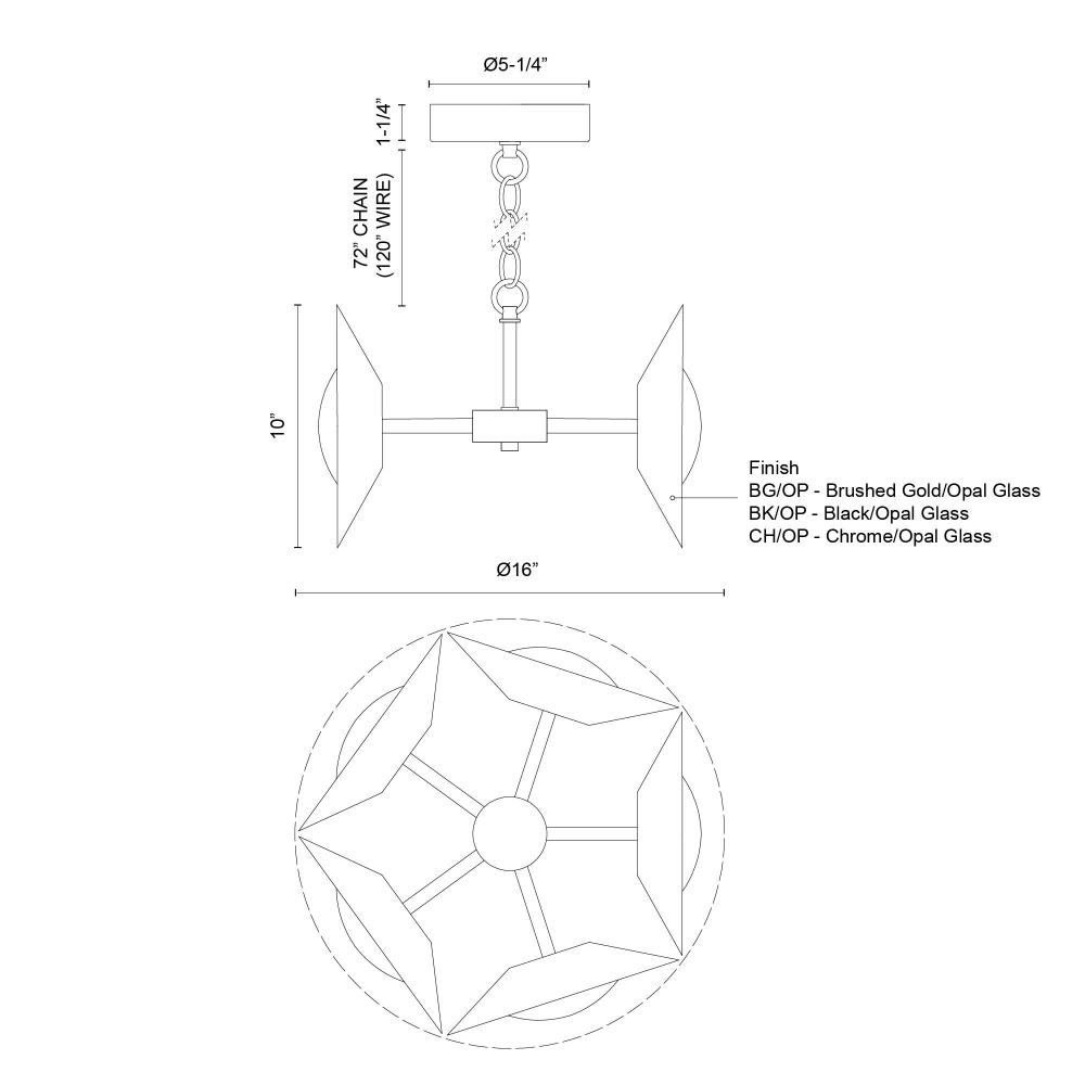 Kuzco Lighting Inc CH77916-BK/OP-UNV - Cleo 16-in Black/Opal Glass LED Chandelier
