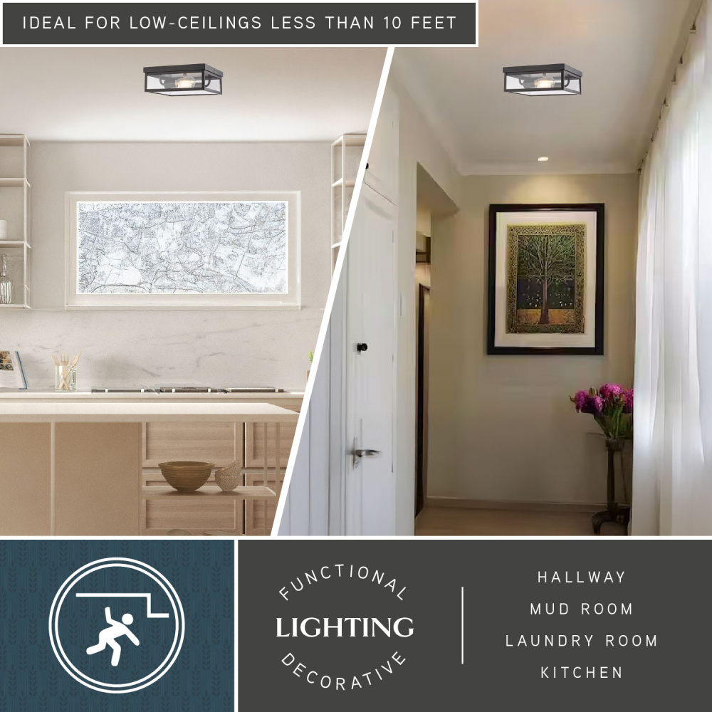 Clinton 12-in. W 2 Light Outdoor Flush Mount Matte Black