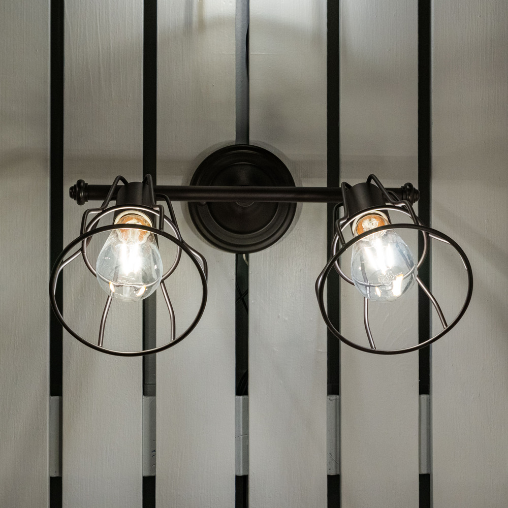 Cage like features give the Clybourn bath collection a modern yet industrial flair. Urban loft inspired spaces are a sure fit for this collection, handsomely finished in oil rubbed bronze. The simple bell-shaped characteristics are stylishly offered in both ceiling and wall mounted styles, perfect for a bath, hallway or even home office. The adjustable shades allow flexibility so light is pointed where needed most. Combine that with a vintage Edison style filament bulb to complete the look.