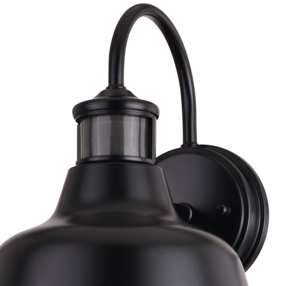 Modern farmhouse style shines through in the Cody wall light. This updated classic barn light is ideal for your covered porch, entryway, garage, or any other outdoor area of your home. Dualux patented dual-level security lighting is outdoor lighting made smarter, brighter light at dusk, dimmer at night, brightening instantly when it detects motion. Designed to enhance your home’s beauty, security, and efficiency reliably and effortlessly from dusk to dawn with its built-in motion sensor and photocell. This fixture works with any dimmable incandescent or halogen bulb and most dimmable LED bulb models. This decorative outdoor security light is designed to enhance the beauty, safety, and efficiency of your home.