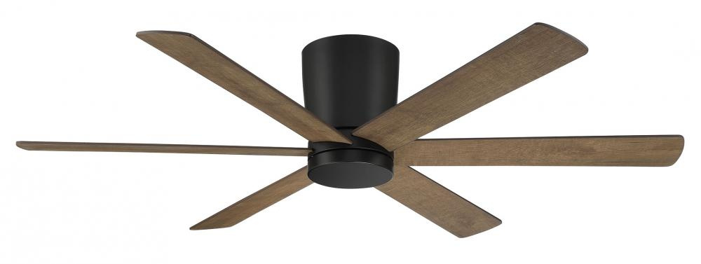 Wi-FI enabled Smart Matte Black ceiling fan, with Aged wood blades, Dimmable 3000K LED, Hugger design