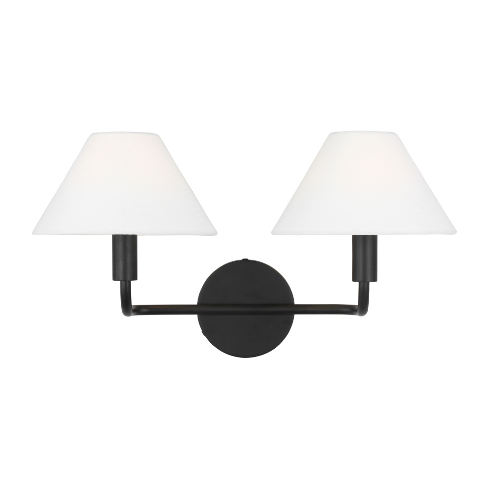 Crafted with Steel in a Aged Iron finish with white linen shades