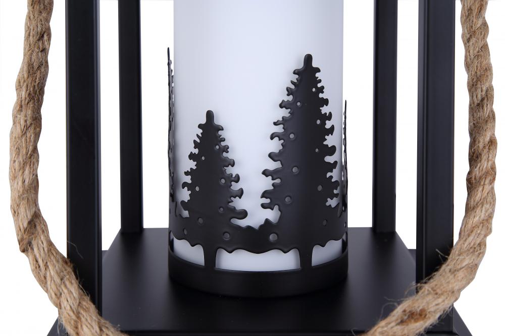 Bring a Touch of Nature Indoors with the Collie 1 Light Table LampEnhance your living space with the rustic charm of the Collie 1 Light Table Lamp. Featuring a unique combination of matte black finish and natural rope handle, this table lamp adds a distinctive, nature-inspired look to any room. The flat opal glass shade is adorned with a charming tree pattern, providing a cozy and inviting ambiance perfect for creating a serene environment.Standing at 12.75 inches tall with a 7.25-inch width, the Collie lamp is compact yet impactful, making it an ideal addition to bedside tables, living room side tables, or even as an accent piece in your study. The convenient on-off switch on the cord ensures easy operation, blending functionality with style seamlessly.Illuminate your space with the Collie 1 Light Table Lamp, and bring a touch of outdoor elegance into your home decor.