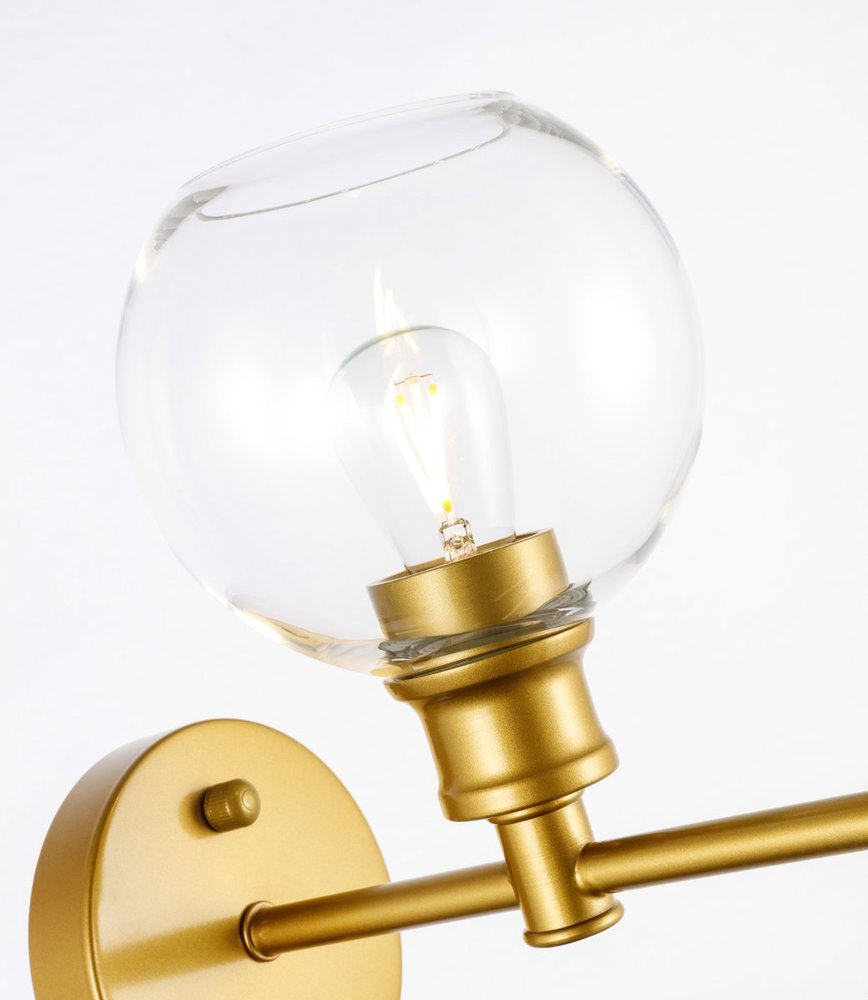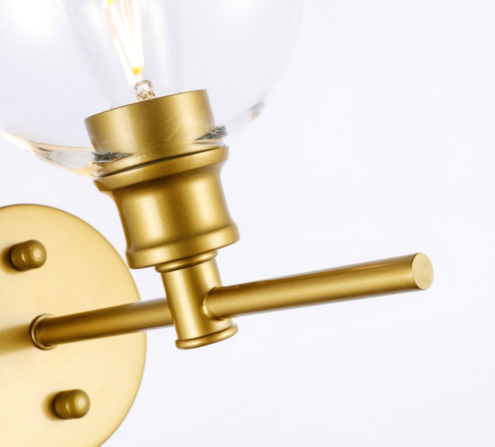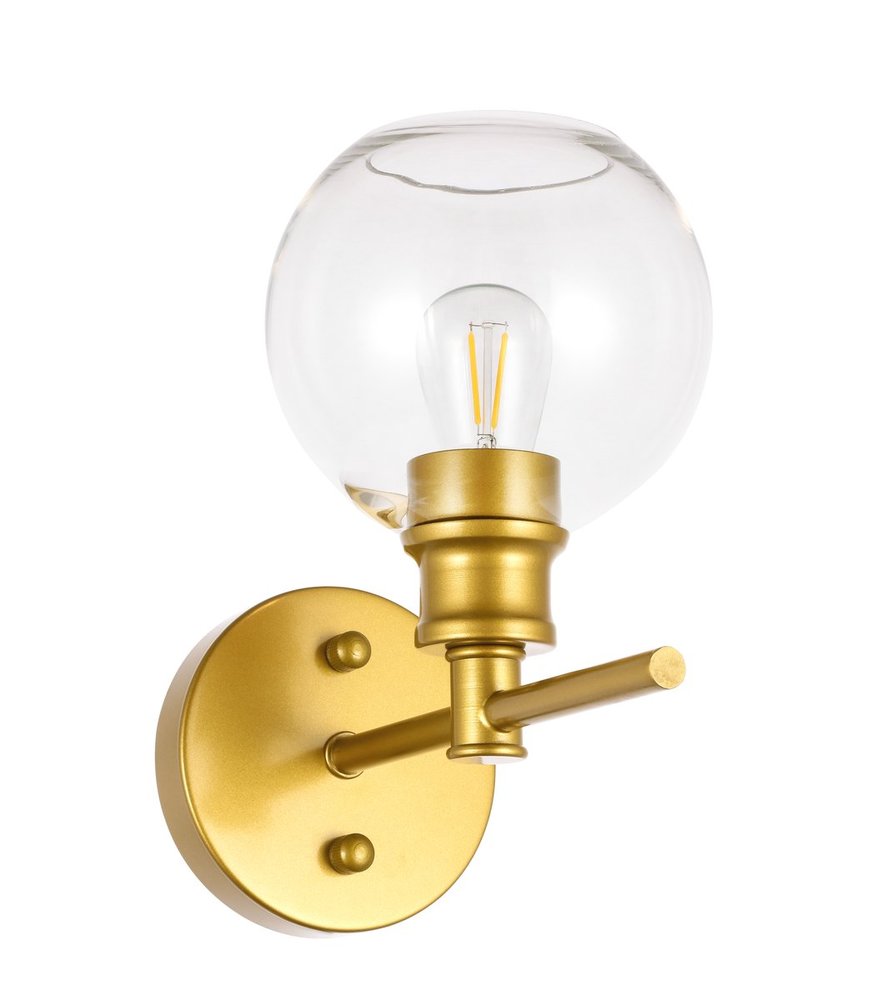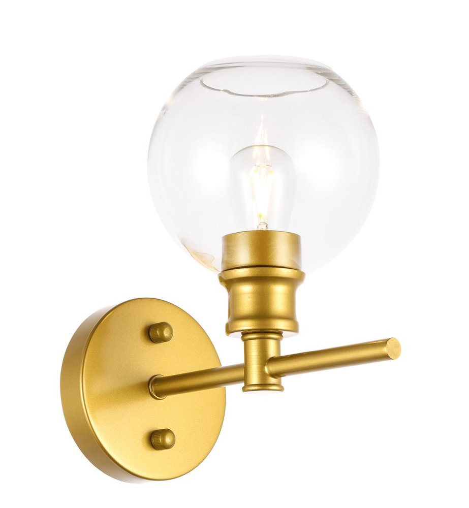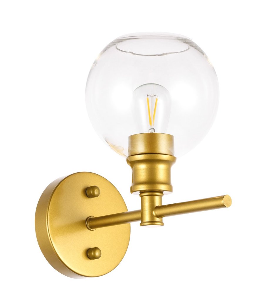 The Collier Collection of lights will be sure to have your guests admire your modern sense of style with the beautiful simplicity of its shape and form. The sleek curvature of the ball shaped shade creates the juxtaposition of intricate simplicity, achieving a style that has both form and function. This wall lamp can be oriented facing up or down, and can shine by itself or paired with another to create an even brighter illumination that will brighten any home. Available in a brass, chrome, or black finish with either a clear or frosted ball glass shade, it is the perfect wall lamp to enhance your bathroom, foyer, or hallways, allowing you to always live in chic and fashionable lifestyle (light bulbs not included).