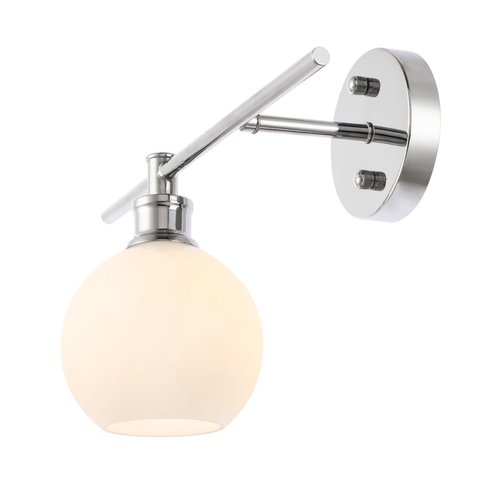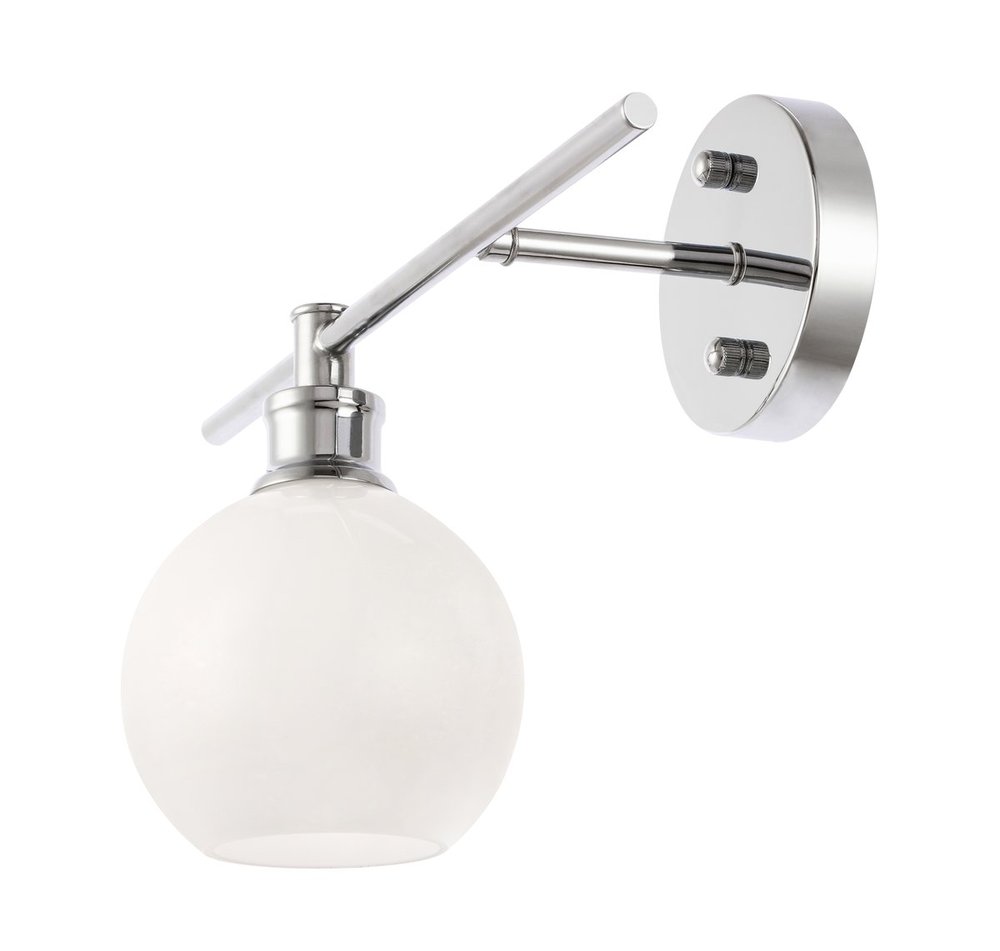 The Collier Collection of lights will be sure to have your guests admire your modern sense of style with the beautiful simplicity of its shape and form. While this wall lamp is versatile and can be oriented with the light facing up or down, its modern style will remain a constant, and its illumination will always brighten any home. Available in a brass, chrome, or black finish with either a clear or frosted ball glass shade, it is the perfect wall lamp to enhance your bathroom, foyer, or hallways, allowing you to always live a chic and fashionable lifestyle (light bulbs not included). Also available in either left facing or right facing configuration.