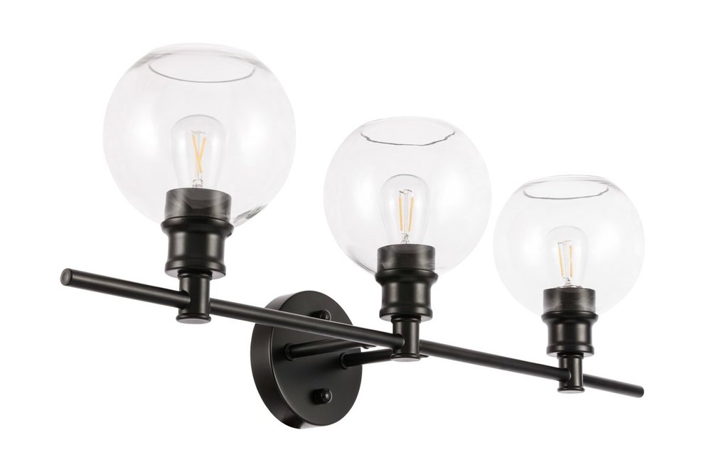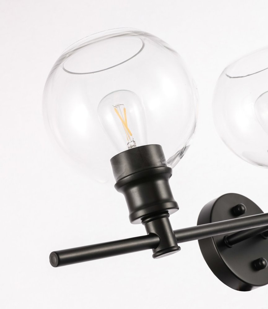 The Collier Collection of lights will be sure to have your guests admire your modern sense of style with the beautiful simplicity of its shape and form. The clean lines of the ball shaped shades create the juxtaposition of intricate simplicity, achieving a style that has both form and function. This wall lamp can be oriented facing up or down, but will always illuminate your room. Available in a brass, chrome, or black finish with either a clear or frosted ball glass shade, it is the perfect wall lamp to enhance your bathroom, foyer, or hallways, allowing you to always live a chic and fashionable lifestyle (light bulbs not included).