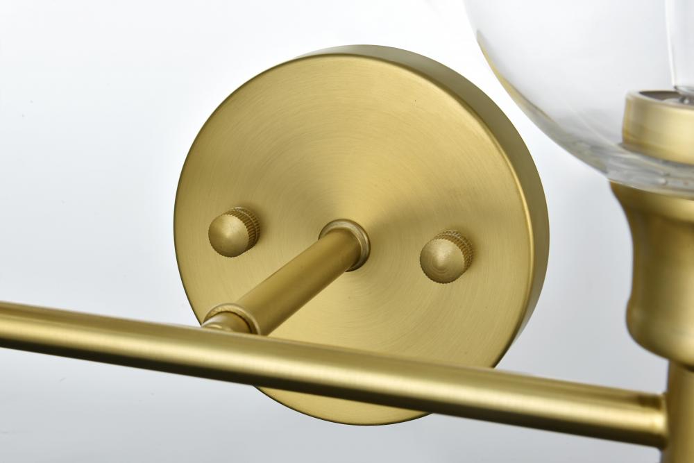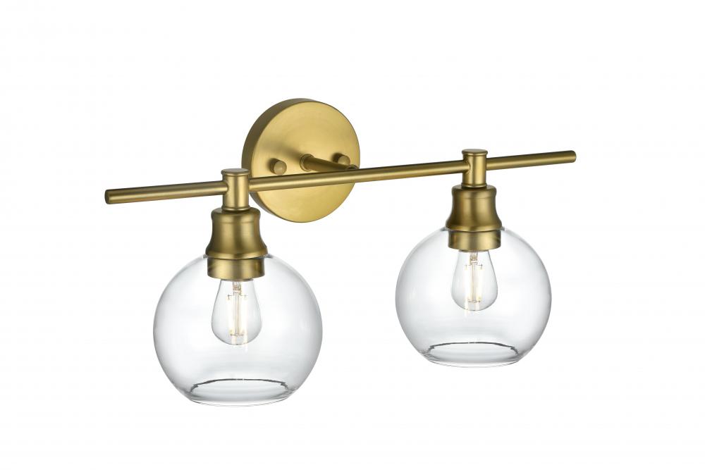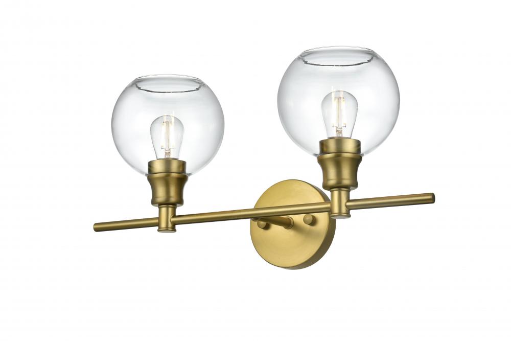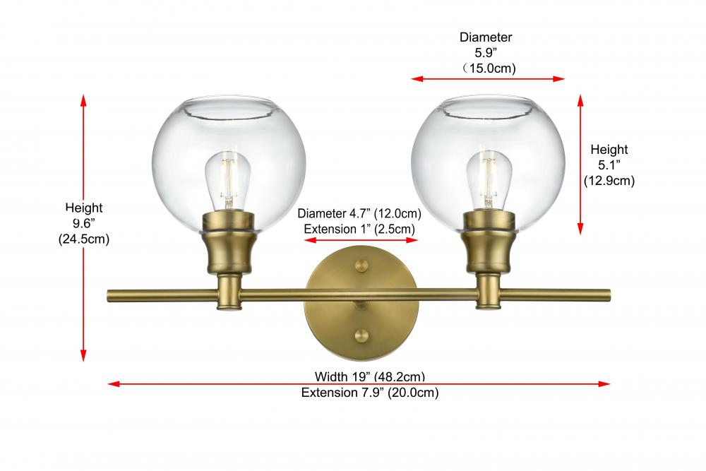 Add a touch of contemporary style to your space with this versatile wall sconce. Available in satin gold, chrome, black, and brass finishes, this fixture complements any decor, from modern to classic. The wall sconce showcases a pair of glass globe shades, available in clear or frosted white that deliver a bright, ambient glow, whether mounted upwards or downwards. Crafted from durable iron and glass, it combines robustness with a sleek style. The clean lines of the round backplate and horizontal arm create a modern yet timeless look. Designed for hardwired installation, this fixture uses E26 standard sockets, allowing you to choose the perfect bulbs for your desired ambiance. This wall sconce is ready to elevate any room with its unique combination of functionality and contemporary design.