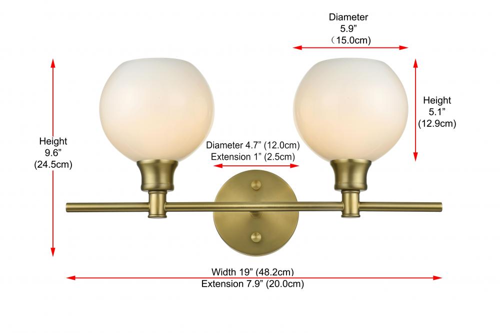 Add a touch of contemporary style to your space with this versatile wall sconce. Available in satin gold, chrome, black, and brass finishes, this fixture complements any decor, from modern to classic. The wall sconce showcases a pair of glass globe shades, available in clear or frosted white that deliver a bright, ambient glow, whether mounted upwards or downwards. Crafted from durable iron and glass, it combines robustness with a sleek style. The clean lines of the round backplate and horizontal arm create a modern yet timeless look. Designed for hardwired installation, this fixture uses E26 standard sockets, allowing you to choose the perfect bulbs for your desired ambiance. This wall sconce is ready to elevate any room with its unique combination of functionality and contemporary design.