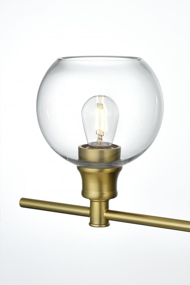 Features clear glass shades in a classic globe shape, allowing maximum light output and a modern aesthetic.
