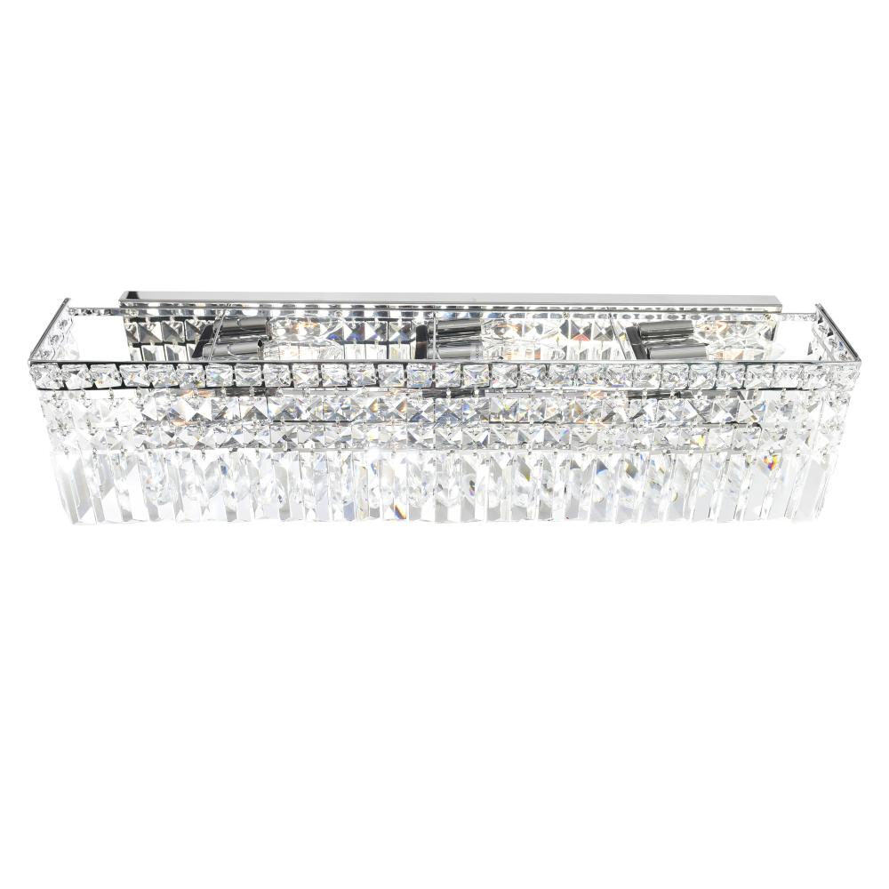 Spa-Like Glow: Rectangular 6-light sconce with densely packed clear crystals delivers flattering, shadow-free illuminationideal for makeup application or ambient bathroom lighting