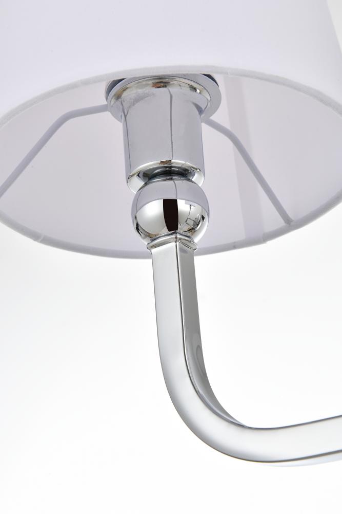 fabric shade filter light from the curved metal armed sconce