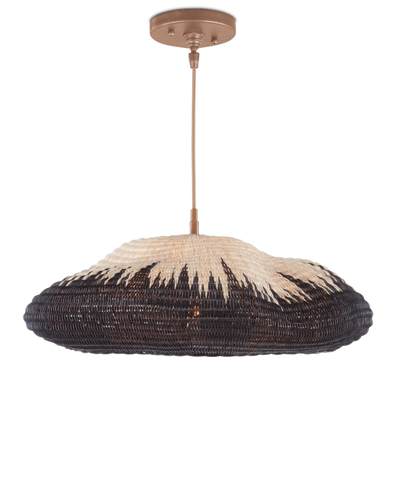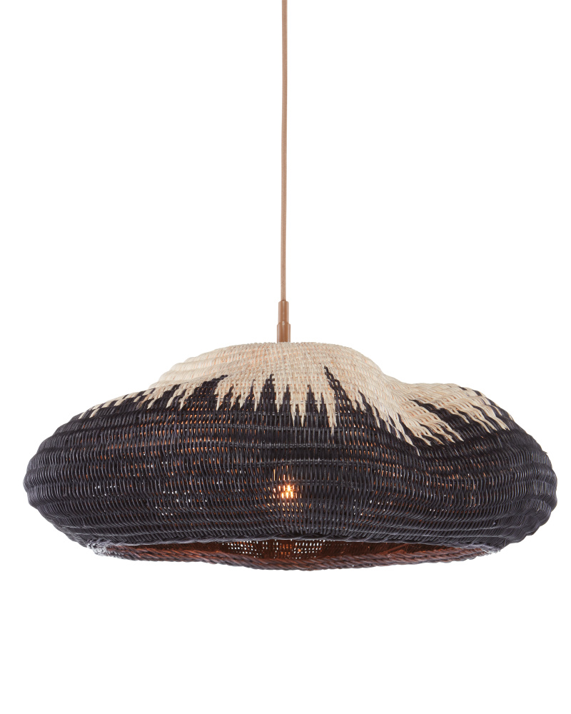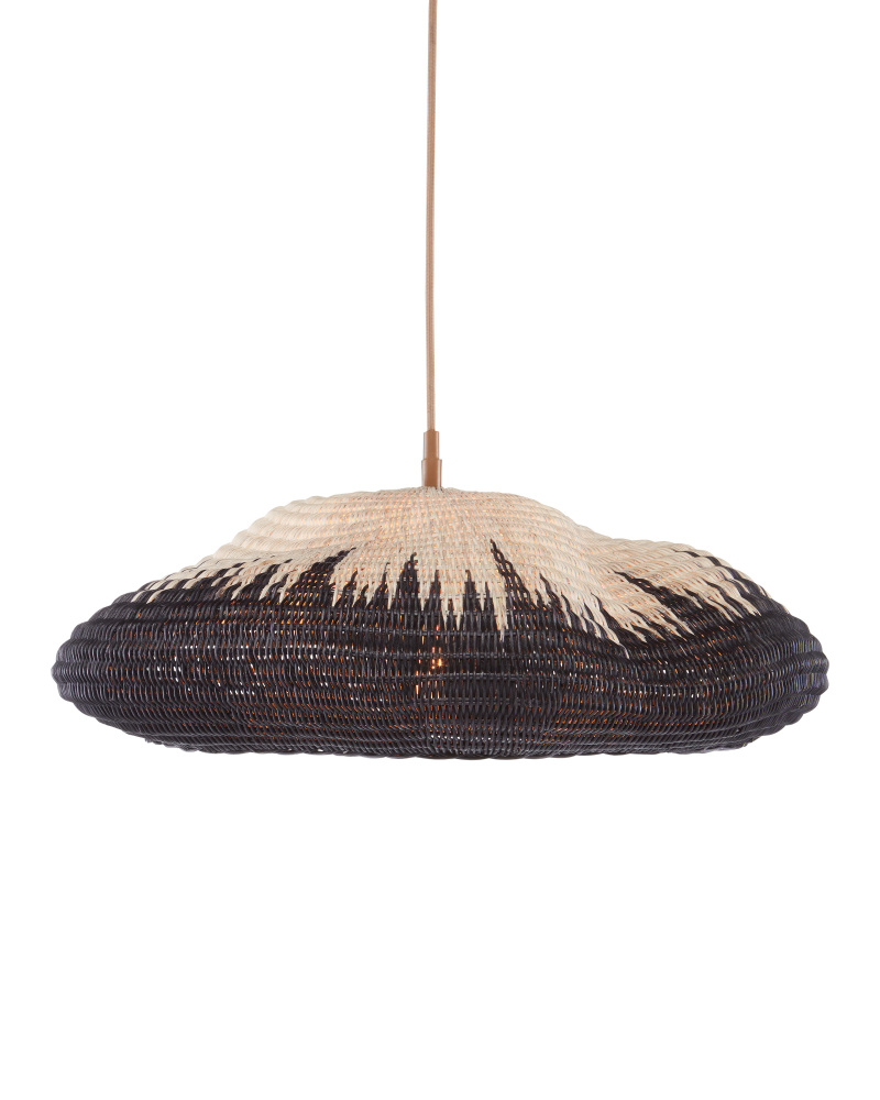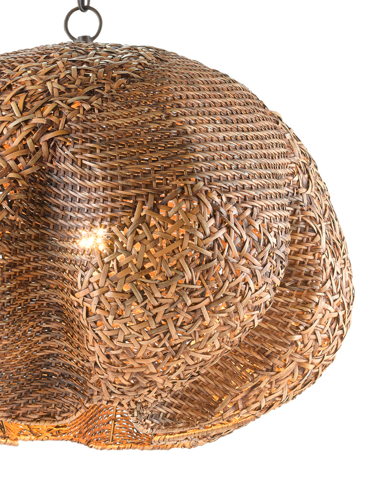 The Comme Des Paniers Pendant was inspired by wicker bags our design team saw in Paris. Panier in French means basket, the name a nod to the basket-weave it took to achieve this cloche-like shade. A detail of note is how the two-tone wicker shade looks as if there is a flame flowing up it. The wrought iron hardware on this basket-weave pendant is in a Khaki finish. Adjustable from 15.5" to 129.5" with use of included chain/rod kit/cable. If your space calls for a longer drop, additional chain/rods/cable is available for purchase.