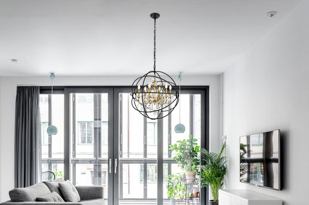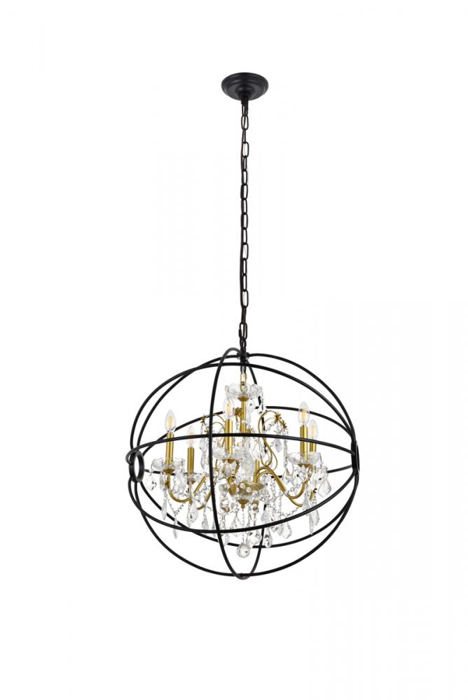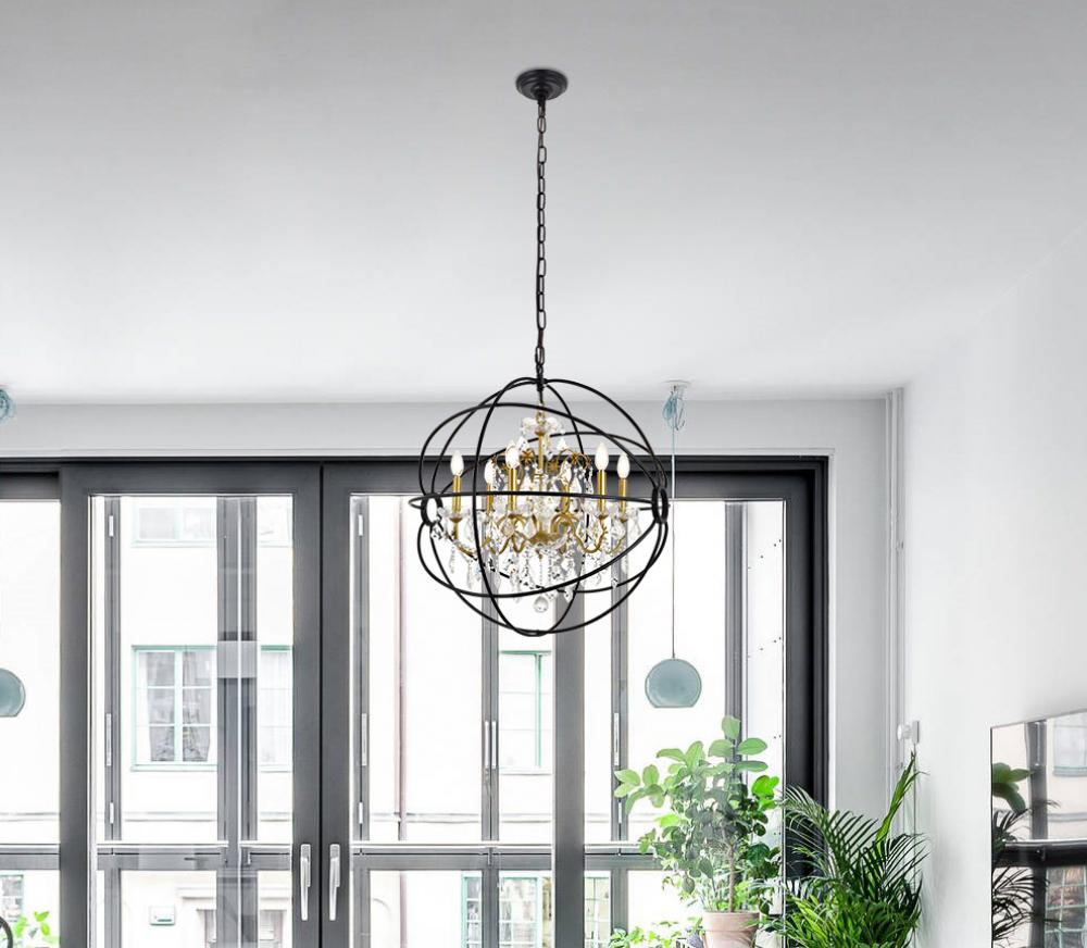 Incorporate pleasant charm into your home with the Cordelia pendant light collection in a two-toned black and gold finish. Dressed in luxurious crystals that dazzle with grace and refined modernity and encased within the metal gyrospheric halo, this lovely hanging light will gracefully illuminate any room.