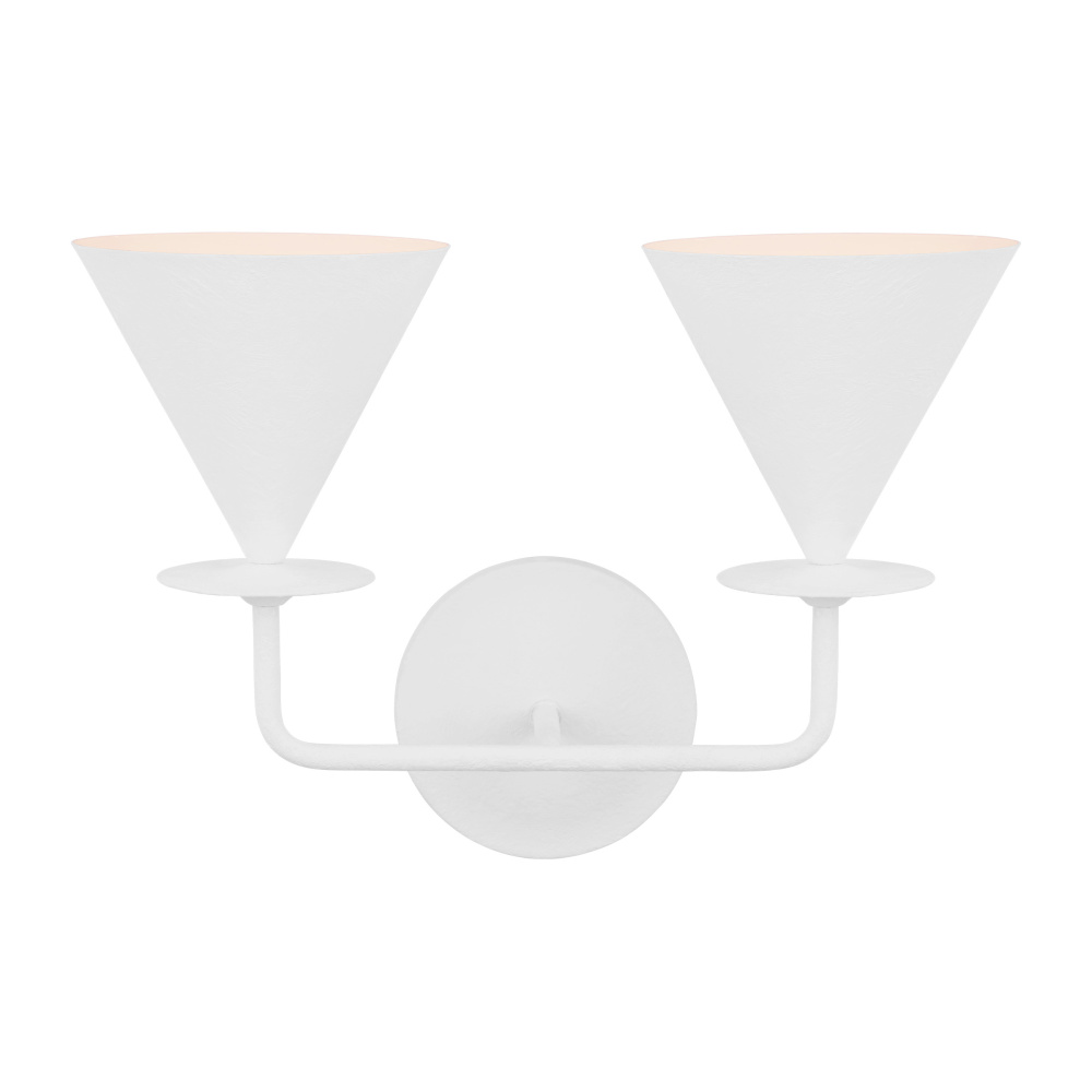 Designed by Christiane Lemieux, the Cornet two light wall sconce in cast plaster provides abundant light for your bath vanity, while adding a layer of today's style to your interior design. Featuring inverted cone shades, Cornet reflects 1920's - 40's European design influences, everything from art deco through to Italian midcentury – even the classic torchieres by Serge Roche. This series features 4 chandeliers, a pendant 2 wall sconces and a floor lamp, all available in a Cast Plaster finish which gives a beautiful hand-crafted look.