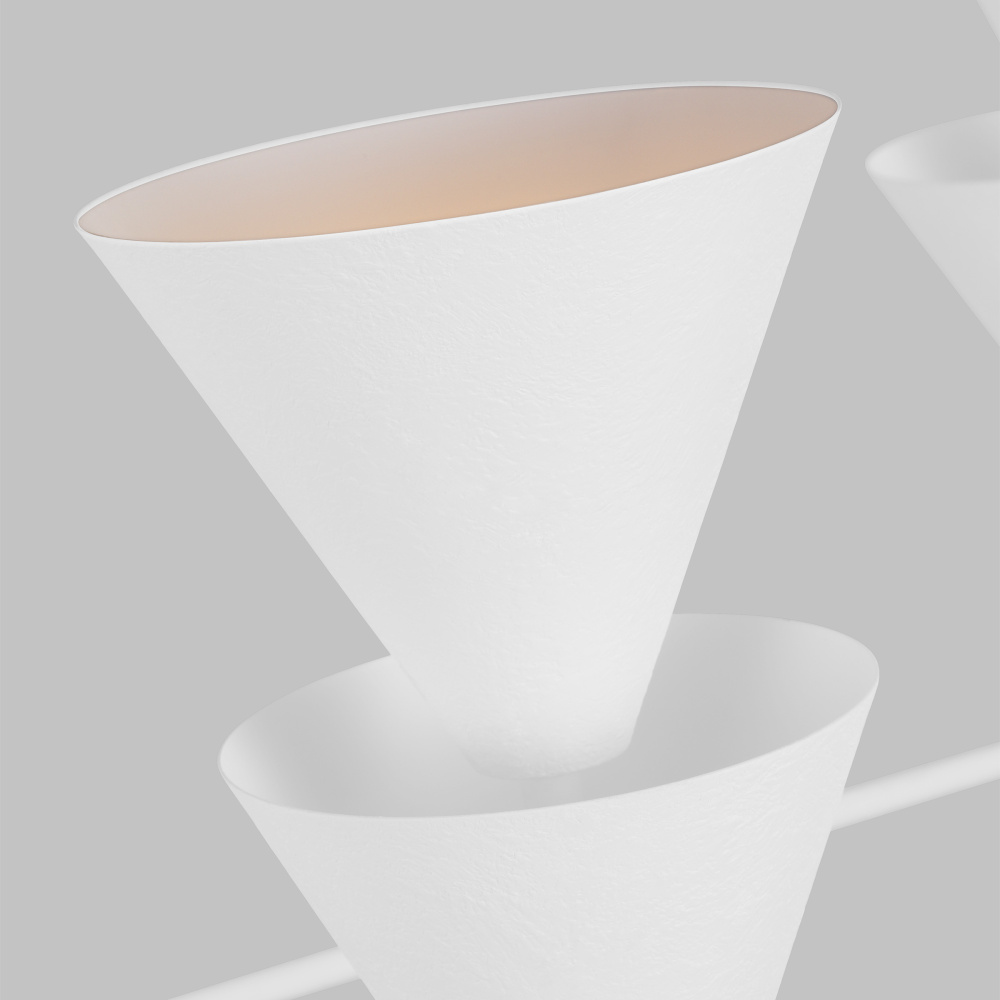 Designed by Christiane Lemieux, the Cornet four light single tier chandelier in cast plaster enhances the beauty of your home with ample light and style to match today's trends. Featuring inverted cone shades, Cornet reflects 1920's - 40's European design influences, everything from art deco through to Italian midcentury – even the classic torchieres by Serge Roche. This series features 4 chandeliers, a pendant 2 wall sconces and a floor lamp, all available in a Cast Plaster finish which gives a beautiful hand-crafted look.