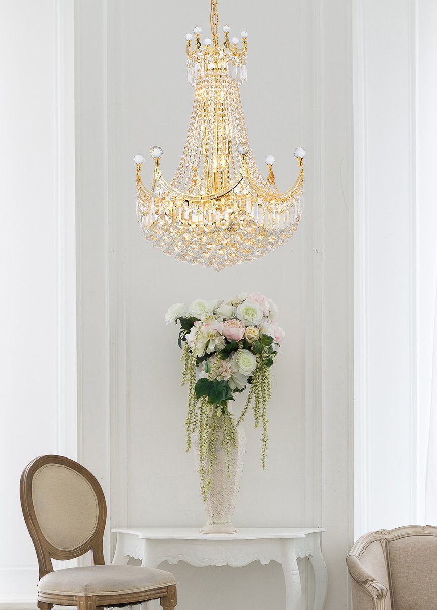 Elegant V8949D24G/RC - Corona 15 light Gold Chandelier Clear Royal Cut Crystal