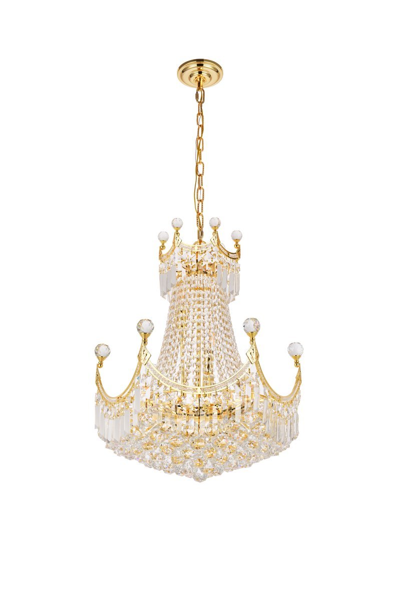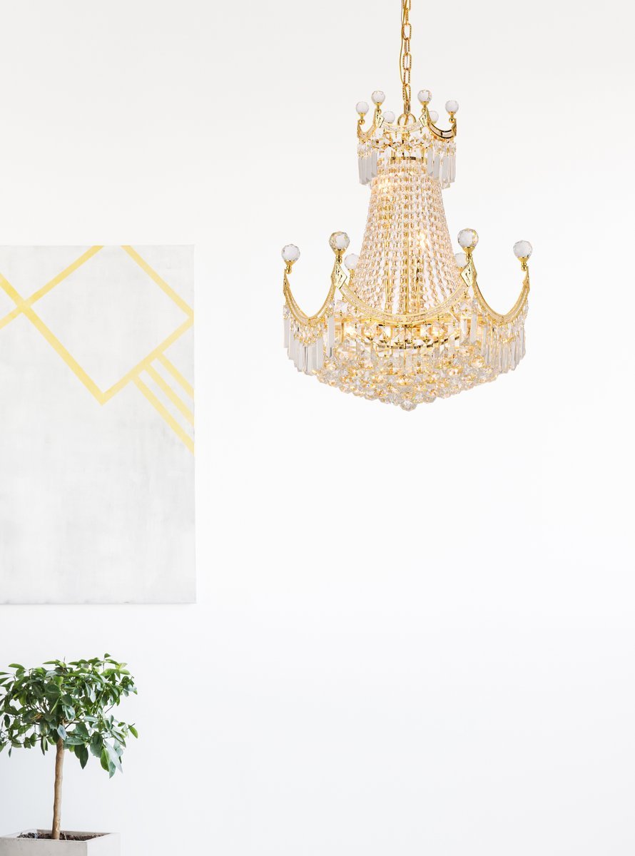 Corona 9 light Gold Chandelier Clear Royal Cut Crystal