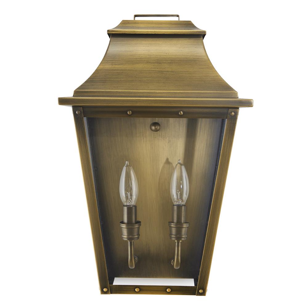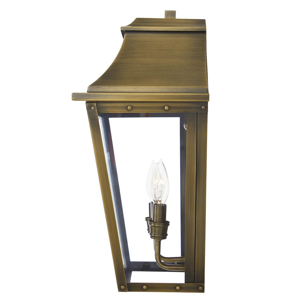 Coventry is impressive and sophisticated. Tapered clear glass panes are set into frames of aged brass. Intricate detailing adds to this traditional Asian inspired pocket lantern.