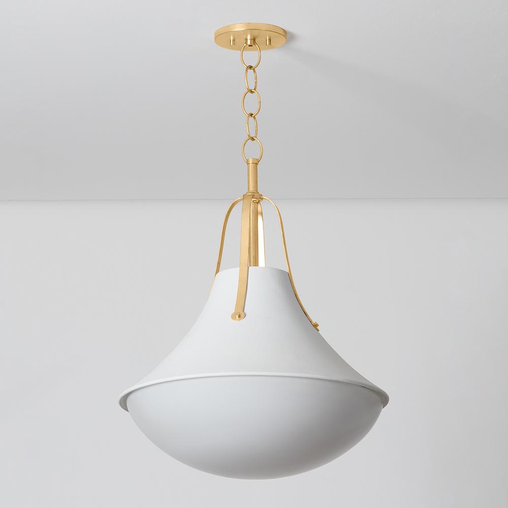 Inspired by Parisian antiques, the transitional design of Coventry is elevated by its decorative details. The soft curves in the silhouette and domed opal glossy glass shade are inviting and easy to apply to multiple spaces. Coupled with the White Plaster finish of the shade, the timeless Vintage Gold Leaf metalwork feels fresh and contemporary. White Plaster finish of the shade.