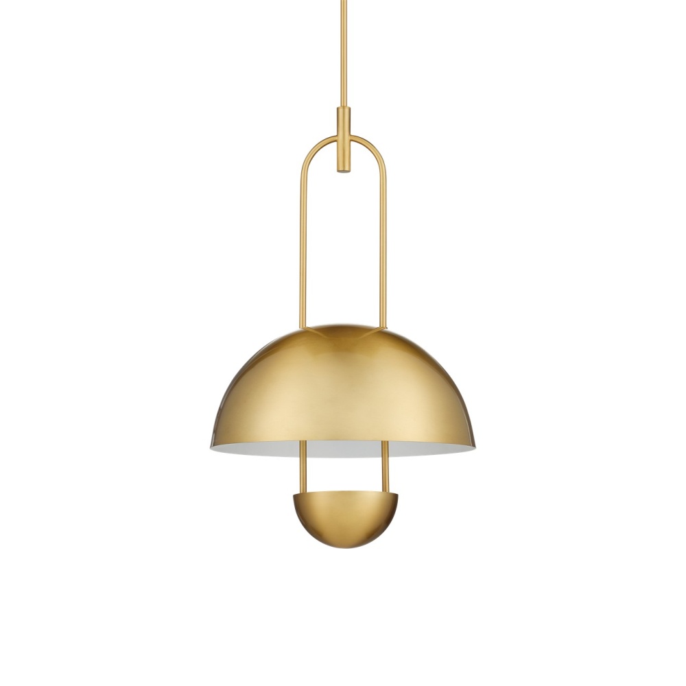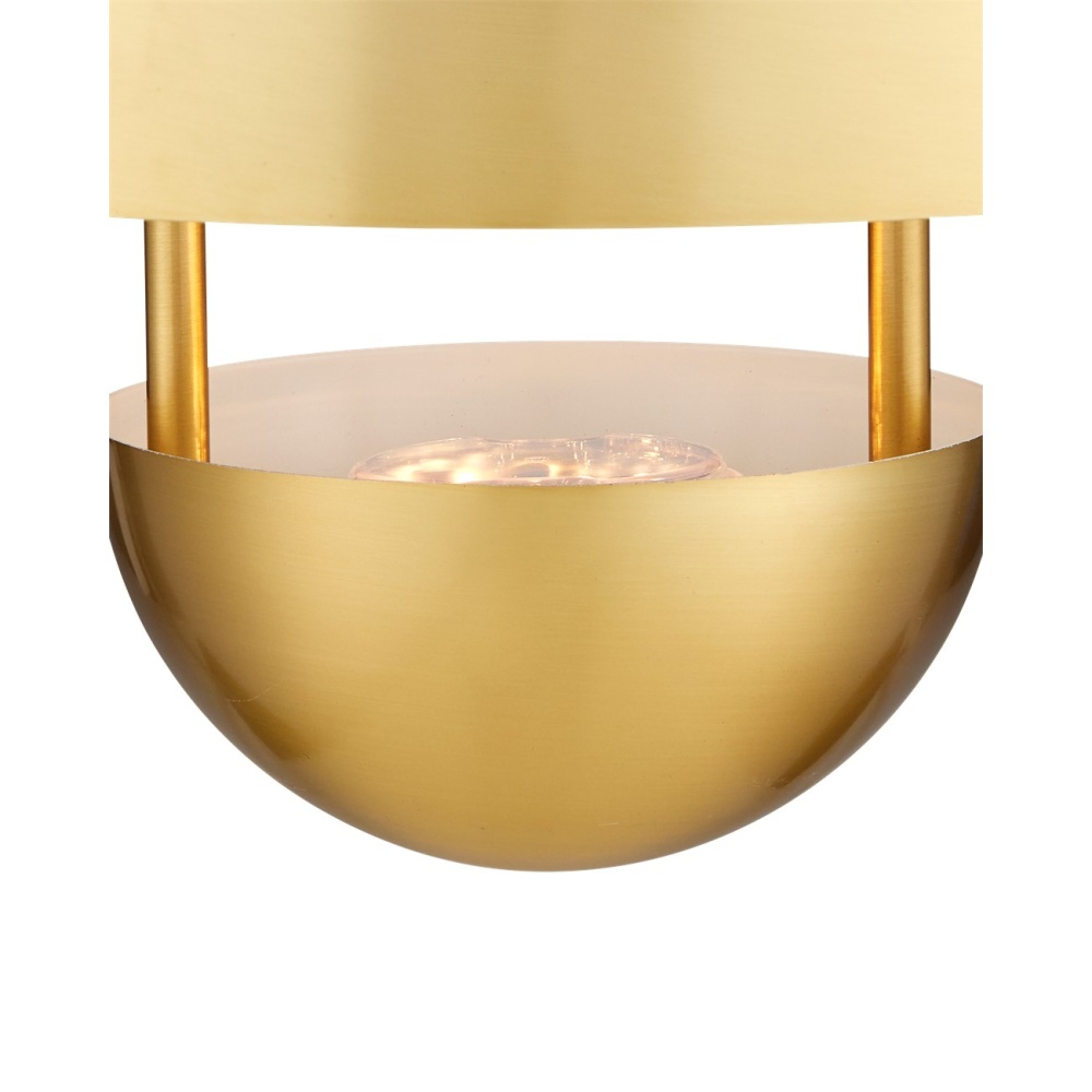 The marvelously modern Creighton Semi-Flush Mount features larger and smaller dome shapes made of spun metal with a brass finish on the exteriors and a white finish on the interiors to enhance the brightness of the light. The bottom cup is fitted with integrated LED technology. A notable design detail is the accent where the loop of the fixture connects to the rod. Adjustable from 35" to 77" with use of included chain/rod kit/cable. If your space calls for a longer drop, additional chain/rods/cable is available for purchase.