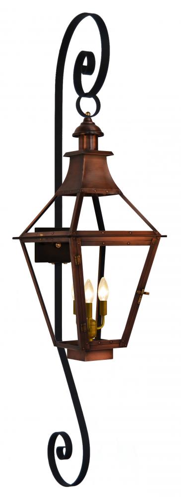 Size 33 Electric Copper Lantern, 3 candelabra base sockets, with Top Scroll, Bottom Scroll