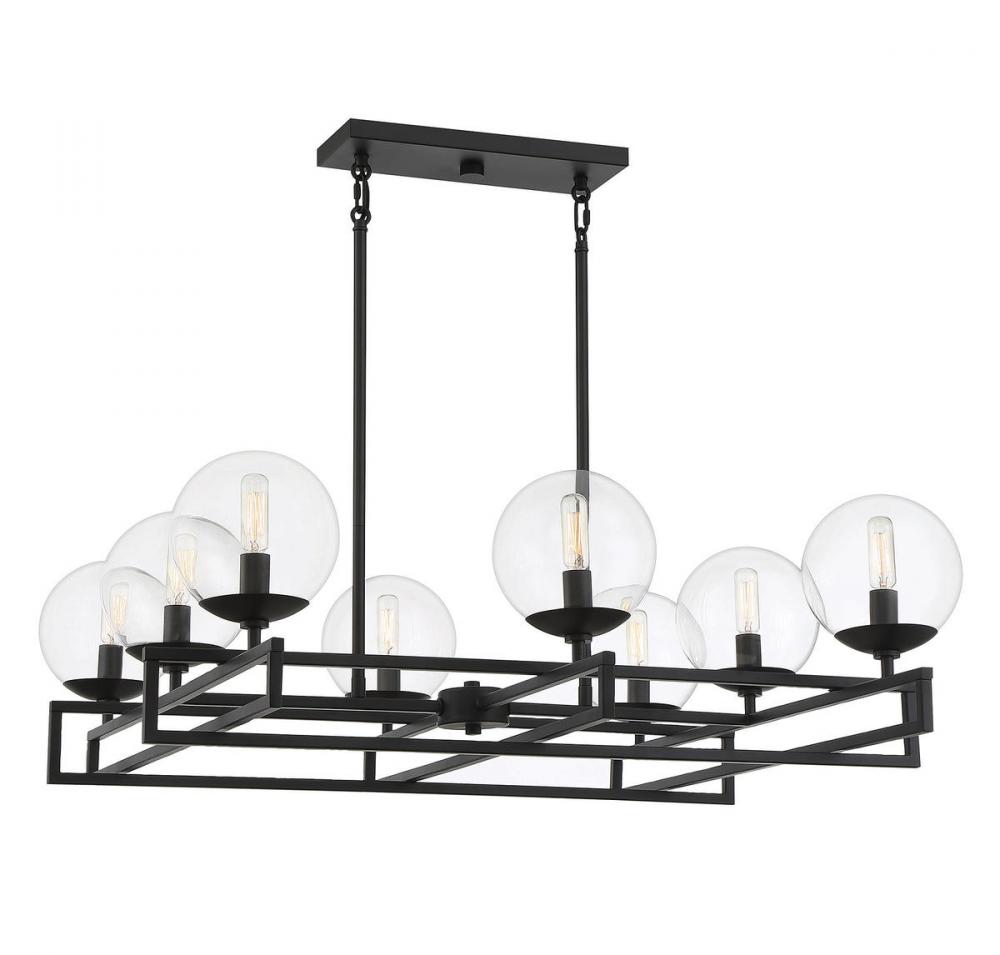 There’s a certain beauty to be found in the idea of an intersection, the place where everything comes together. The Savoy House Crosby 8-light chandelier showcases that beauty with lights nestled in clear glass orbs and placed strategically on intersecting rows. Finished in matte black. Crosby is 30" in length, 30" in width and has an adjustable height ranging from 15.75" to 61.75". It uses eight candelabra size bulbs of up to 60 watts per bulb. Comes with eight 12" downrods and two 6" downrods, plus 80" of cord.