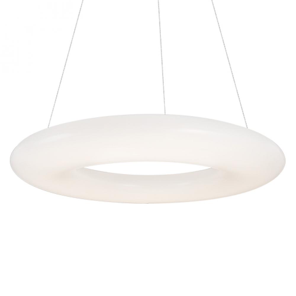 A radiant torus of bright, even illumination. Available in a variety of sizes and as either a pendant or flush mount, these halos of light adapt to any setting. Eternal and substantial.