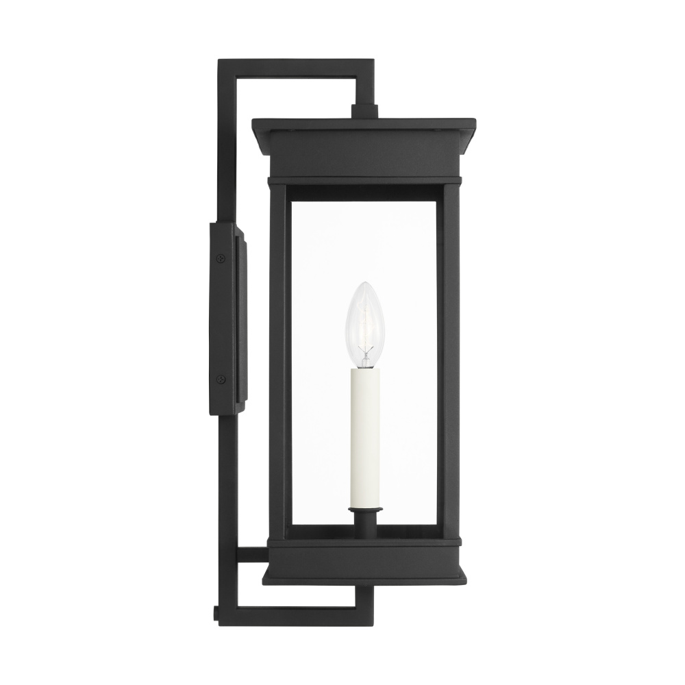 The Cupertino outdoor series by Chapman & Myers was created to embody a more transitional classic rectangular lantern profile. Rather than feature filament tube bulbs, each lantern has a more traditional candelabra with cream candle tubes to complete the design. The top and bottom of each lantern have an almost architectural stepped detailing.