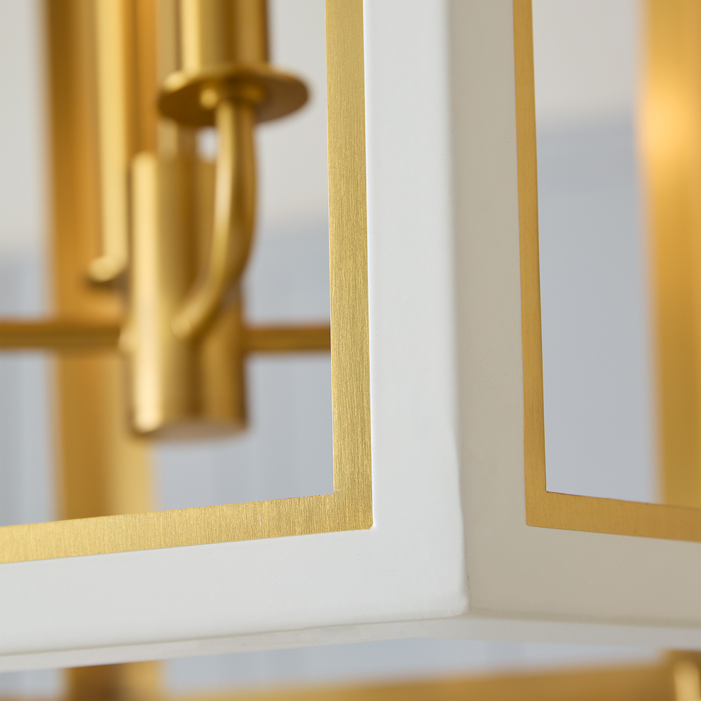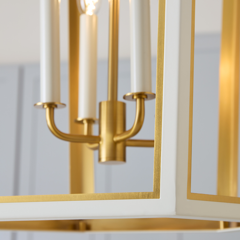 The Curt Three Light Lantern by Alexa Hampton is a modern take on an antique lantern. Elegantly crafted of steel with a Matte White or Midnight Black finish and accented with golden details. A stunning Hexagon shaped hub adds drama to the design.