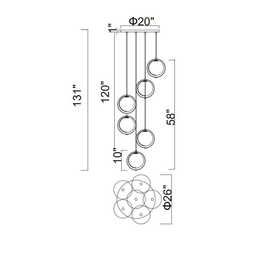 This breathtaking Da Vinci 26'' 6-Light Multi Light Pendant with Brass Finish is a striking ceiling fixture designed to add instant glamour and style. A cluster of frosted white glass globes, each embraced by a golden brass-finished ring, creates a captivating sculptural form. Perfect for stairwells, entryways, or high-ceilinged kitchens, this modern chandelier brings dimension and a luxurious touch to vertical spaces. G9 LED bulbs required (sold separately). Finish: Brass Light Count: 6 Light Source: G9 LED Compatible (Bulbs Not Included) Adjustable Hanging Height: Yes Material: Metal and Glass Style: Modern / Contemporary