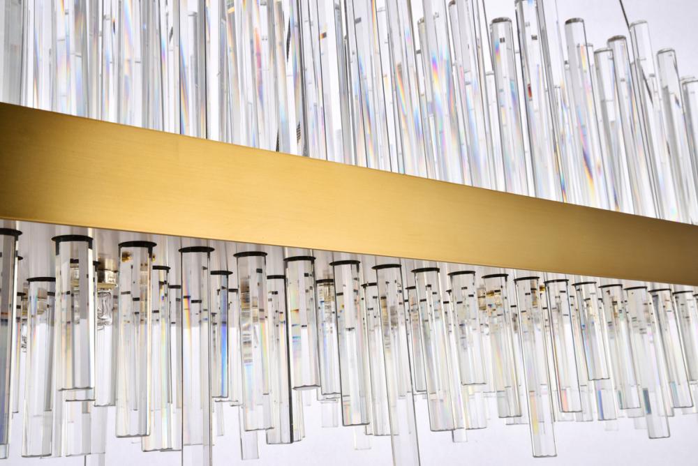 This stately fixture combines timeless elegance with modern and attractive sophistication. The delicate juxtaposition of upright and hanging clear glass rods creates a truly stunning visual statement, seamlessly woven together within a sleek gold frame. This expressive piece would be a welcomed and treasured addition to a wide range of contemporary residential styles.