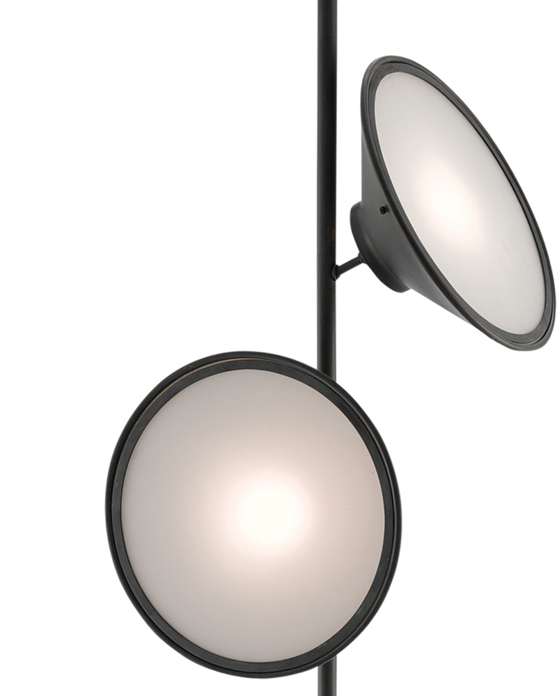 Architectonic with a slight Asian vibe, the Dao Floor Lamp is an example of what talented designers can do to update traditional ideas. The lamp features a weighted base, a slim column joined by knobby globes that have been treated to a silver Granello finish, as has the interior of the tapered shade. The exterior of the shade is finished in satin black. This is a stylish exemplar of a reading lamp.