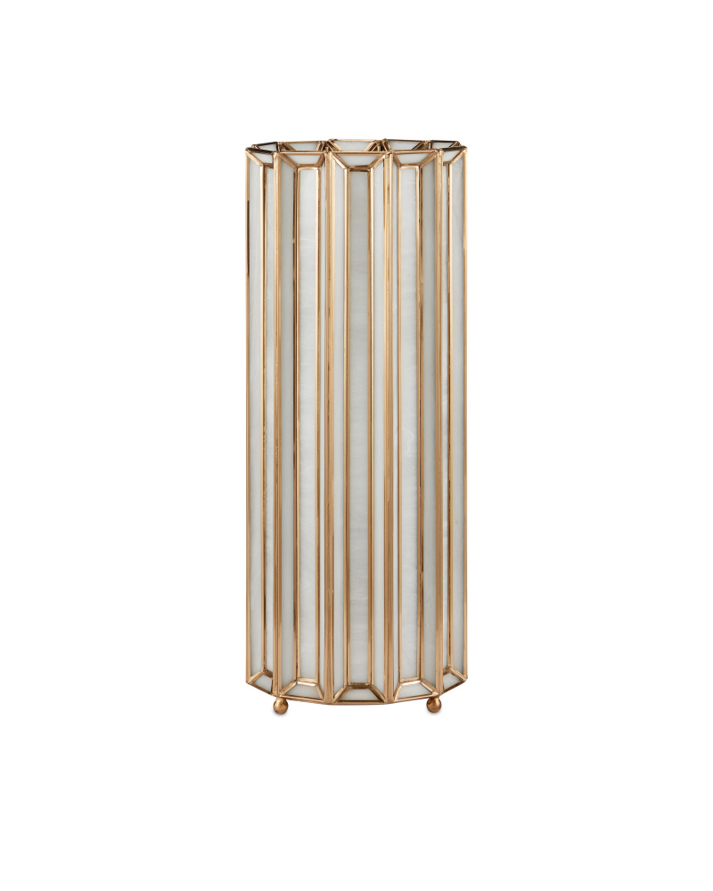 When a soft glow is desired, milk glass is one of the best materials to diffuse illumination. Our Daze Uplight Table Lamp is made of articulated panels of white milk glass that are joined together by ribs of metal in an antique brass finish. This white table lamp with its contemporary profile provides a soft, luminous glow.