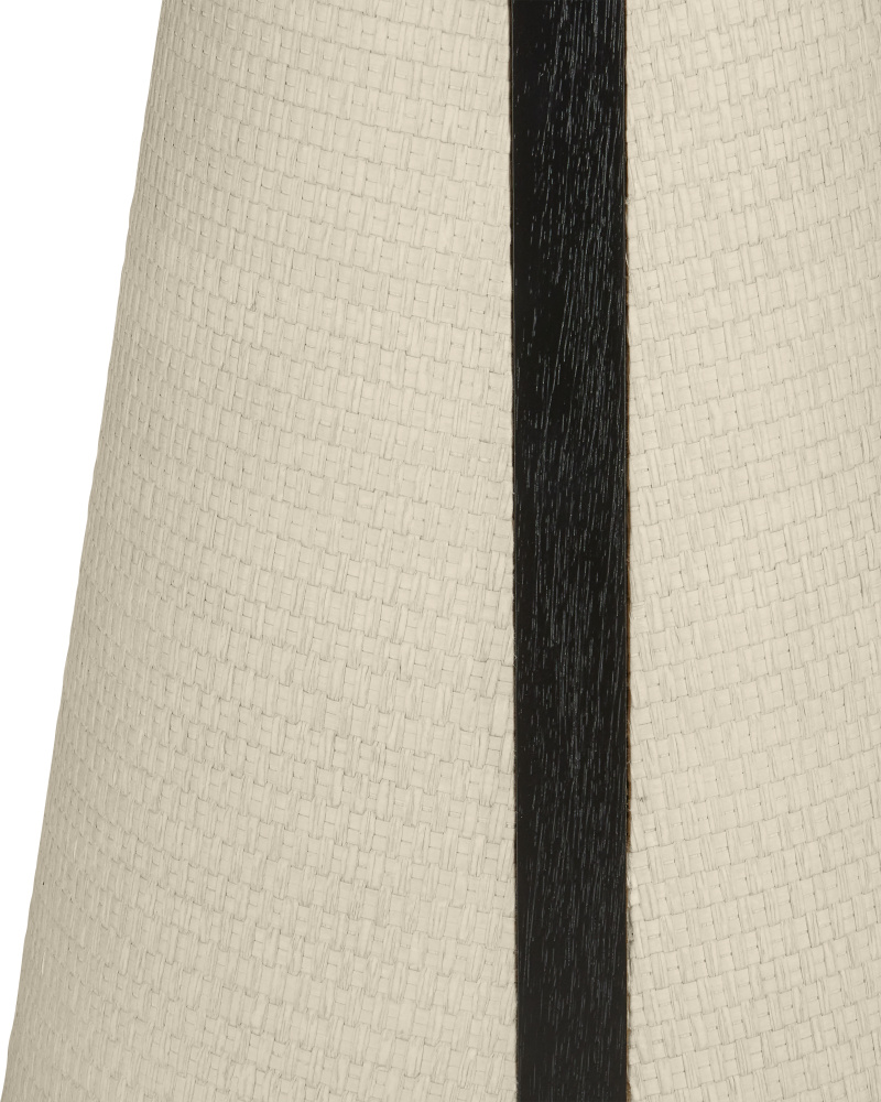 The pedestal of the Deanna Raffia Accent Table has three panels of woven raffia trimmed in Okoume wood veneers in a black finish that flow up to the circular top, also clad in raffia surrounded by a black wood detail. The combination of black and beige bring this accent table a tailored feel that fits within a wide spectrum of design styles, especially a room that exudes Hollywood glamour. The subtle texture of the raffia is a special aspect of this design, as is the fact the table is fitted with an inset glass top to protect the natural fibers.