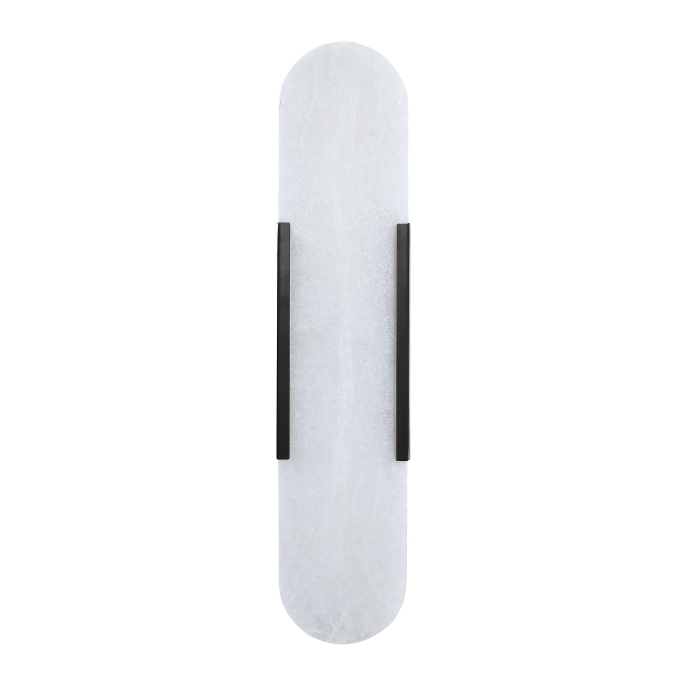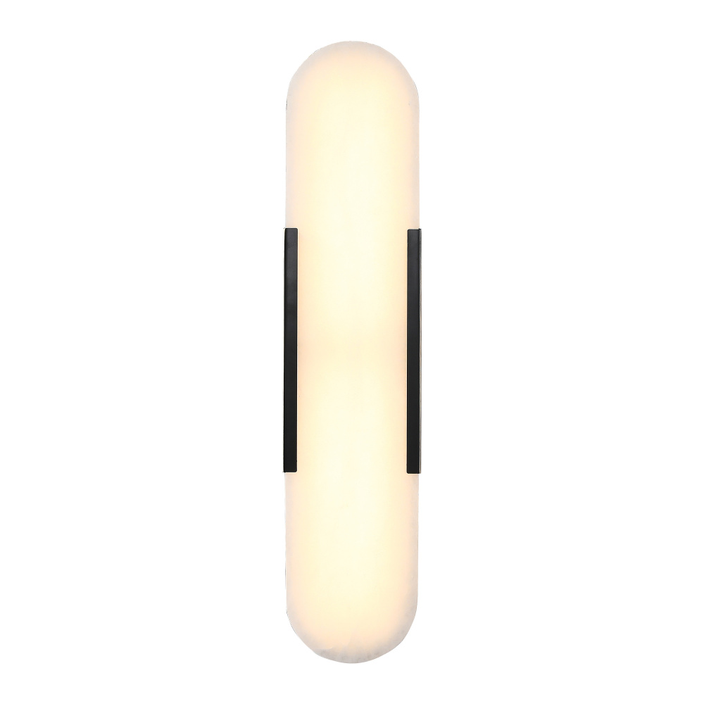 A sleek vertical sconce crafted from natural alabaster, softly illuminated by integrated LED light. Framed with refined metal accents in brushed brass or matte black, it brings a warm glow and modern elegance to hallways, bathrooms, or bedside spaces.