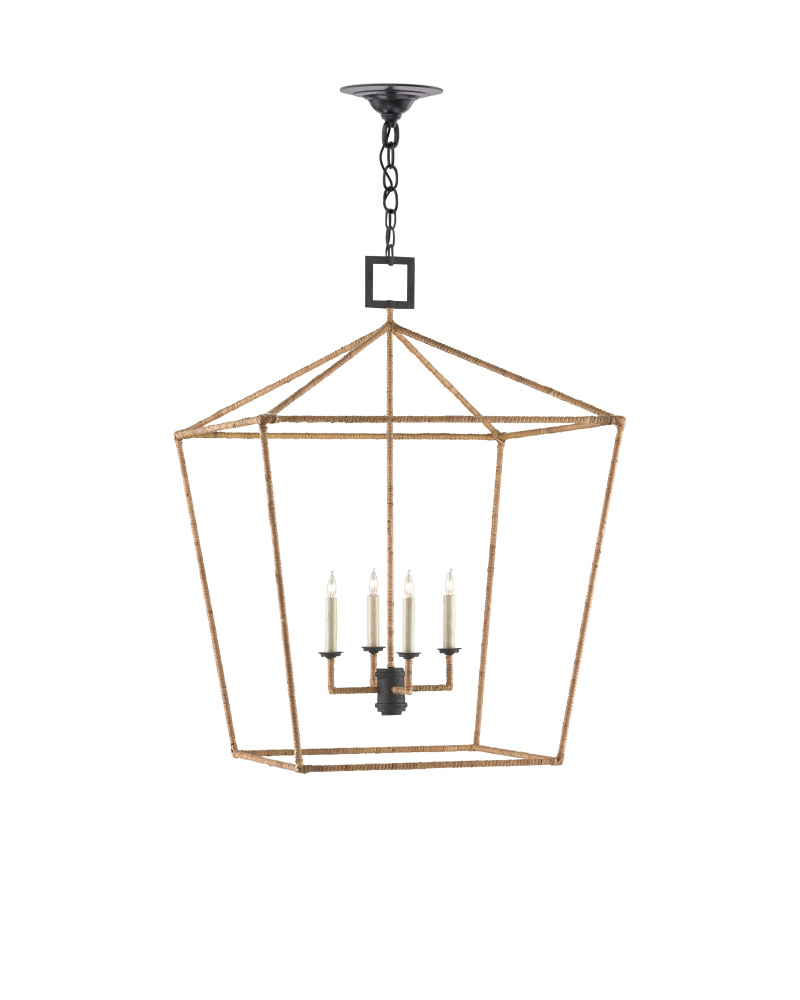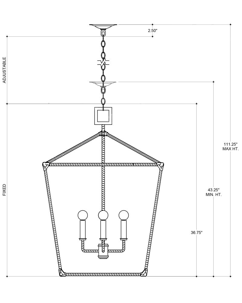 The Denison Rattan Lantern is a hammered wrought-iron fixture in a Mole black finish that is wrapped in rattan. The classic lantern shape has stood the test of time to make it one of our most popular offerings. A design element of note is the square that fastens the lantern to the chain. Adjustable from 43.25" to 111.25" with use of included chain/rod kit/cable. If your space calls for a longer drop, additional chain/rods/cable is available for purchase.