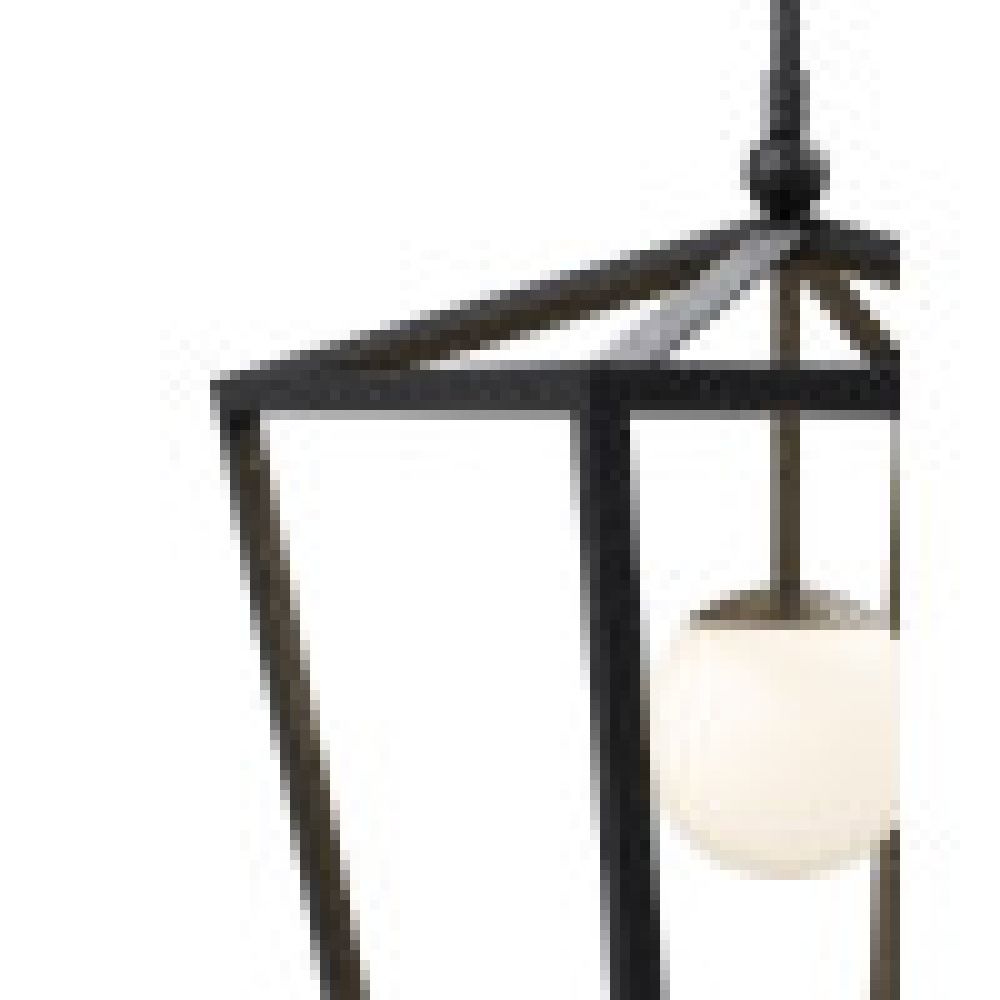The Denison Rectangular Black Outdoor Lantern has a wrought-iron frame in a black powder-coated finish. This classic lantern shape has two lights surrounded by glass globes to create a soft glow. The black finish adds subtle texture to the surface of the metal and the connecting rods that suspend it are architectural accents. The Denison is wet-location tested so it is ideal for lighting patios and porches, and this rectangular lantern is a terrific choice for hanging above long outdoor dining tables. Adjustable from 31.5" to 73.5" with use of included chain/rod kit/cable. If your space calls for a longer drop, additional chain/rods/cable is available for purchase.