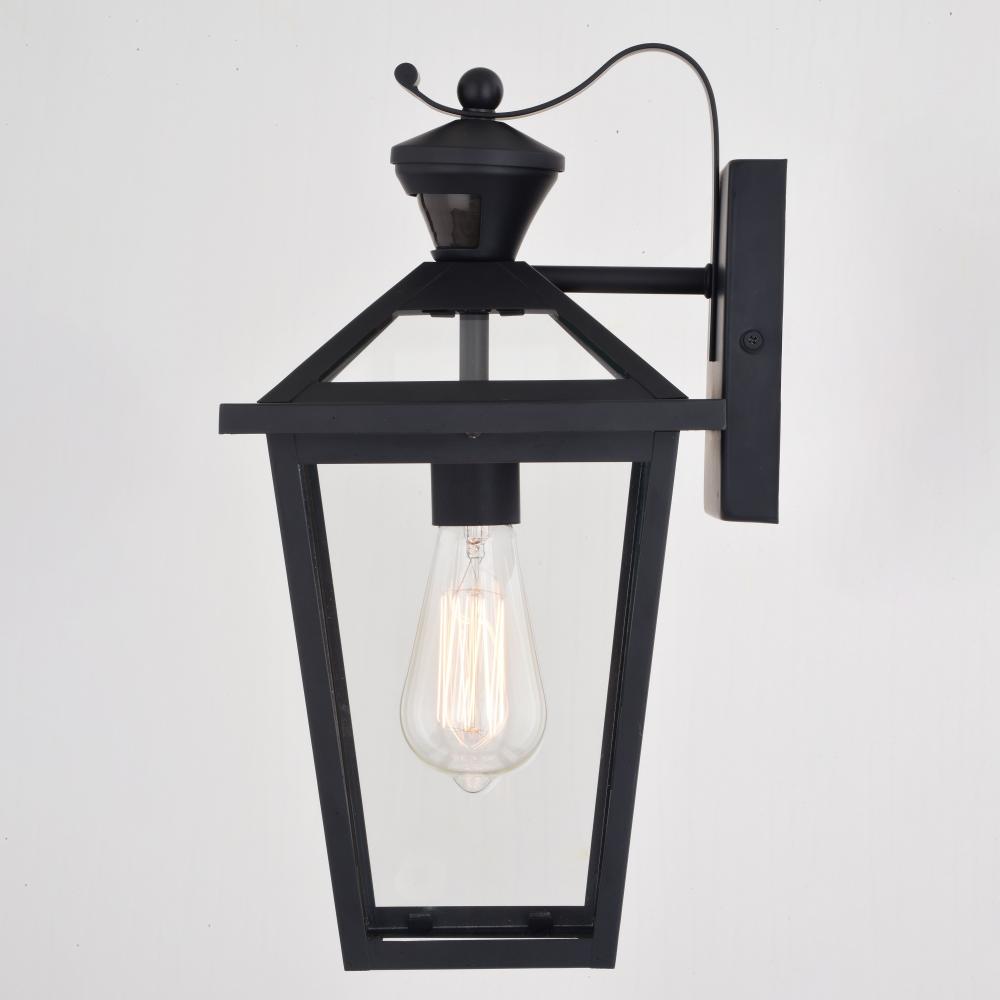 This traditional outdoor wall lantern in matte black finish with clear glass from the Derby collection will add a touch of sophistication to the exterior of your home. Ideal for your porch, entryway, garage, or any other area of your home. Dualux patented dual-level security lighting is outdoor lighting made smarter, brighter light at dusk, dimmer at night, brightening instantly when it detects motion. Designed to reliably and effortlessly enhance your home’s beauty, security and efficiency from dusk to dawn with its built in motion sensor and photocell. This fixture works with any dimmable bulb and many dimmable LED bulb models.