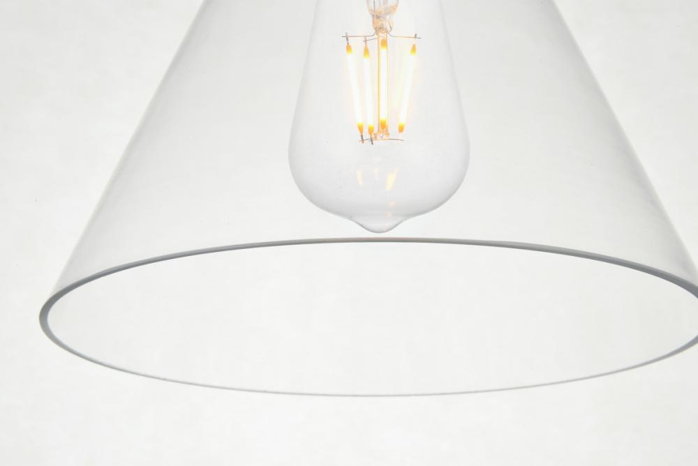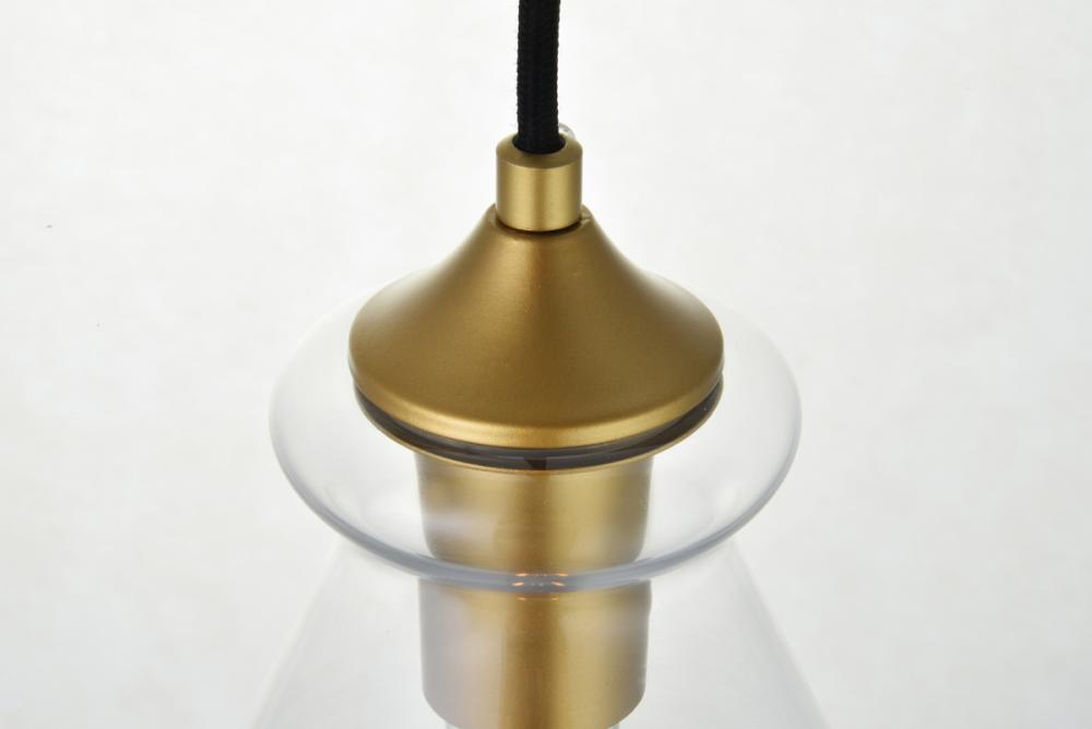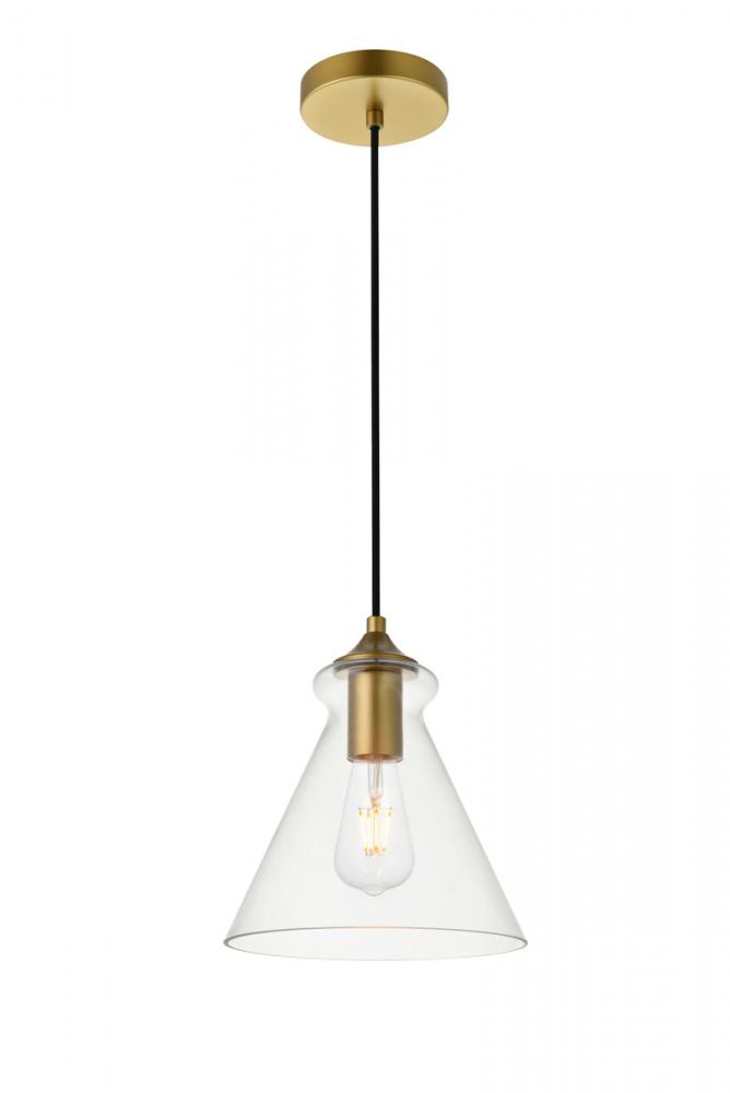 The small, but mighty Destry collection offers sleek pendant lamps that will add a powerful accent to your urban, industrial, or transitional décor. The light’s brass hardware finish adds to the interest of the piece. Brass 'top hat' design accentuates the clear glass shade. Each brass and clear conical shade holds one incandescent or LED light bulb (not included). Brighten your kitchen island, bathroom, entryway, or den with this one-light statement fixture. You may adjust the height to your desired length between 15 and 69