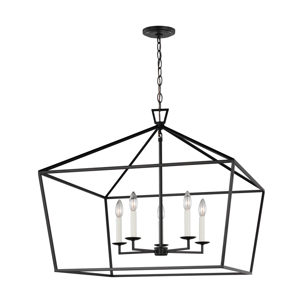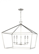 The Dianna five light wide lantern by Visual Comfort Studio is offered in the Midnight Black, Satin Brass or Brushed Nickel finish. The dark and transitional open frame encompass generously proportioned candelabra style bulbs. This updated silhouette brings a modern element to your cozy ambient lighting design.