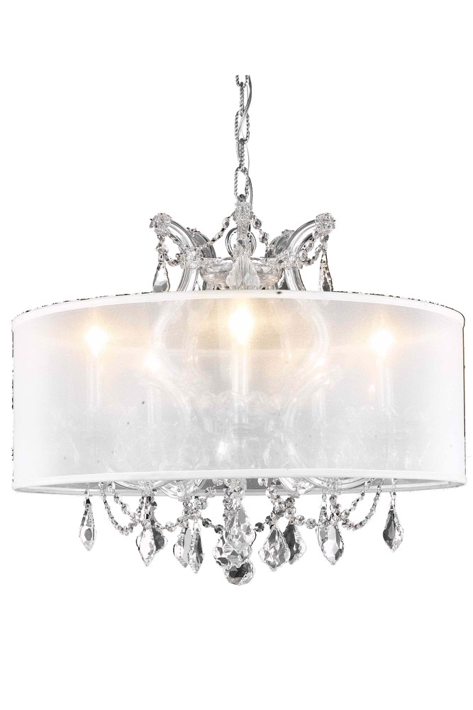 2800 Maria Theresa Collection Hanging Fixture w/ Silver Round Shade D23in H25in Lt:5+1 Chrome Finish (Royal Cut Crystal)
