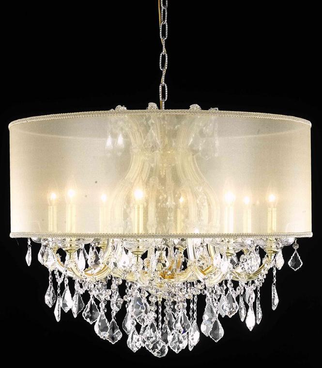 2800 Maria Theresa Collection Hanging Fixture w/ Gold Round Shade D30in H26in Lt:8+1 Gold Finish (Swarovski Strass/Elements Crystal)