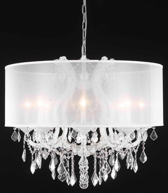2800 Maria Theresa Collection Hanging Fixture w/ Silver Round Shade D30in H26in Lt:8+1 White Finish (Swarovski Strass/Elements Crystal)