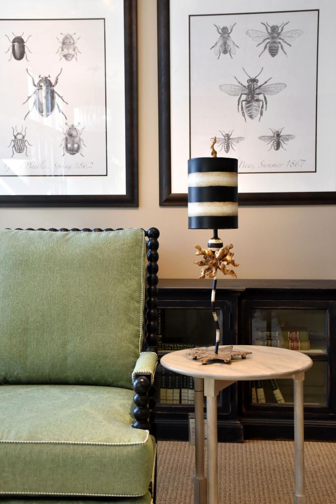 A 25" accent lamp with an 8" base, featuring a black and white striped shade. Its whimsical, eclectic charm adds classic grace to home offices, bathrooms, or breakfast nooks with transitional style.