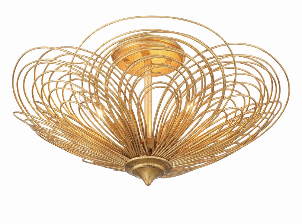 Delicate flower petals inspire the Doral collection. Its swirling metal rings create a beautiful piece of art and enhance a room design with its attractive symmetrical shape. When gazing up, this fixture will remind you of a blooming flower. It’s warm finish and organic shape are versatile for all modern settings.