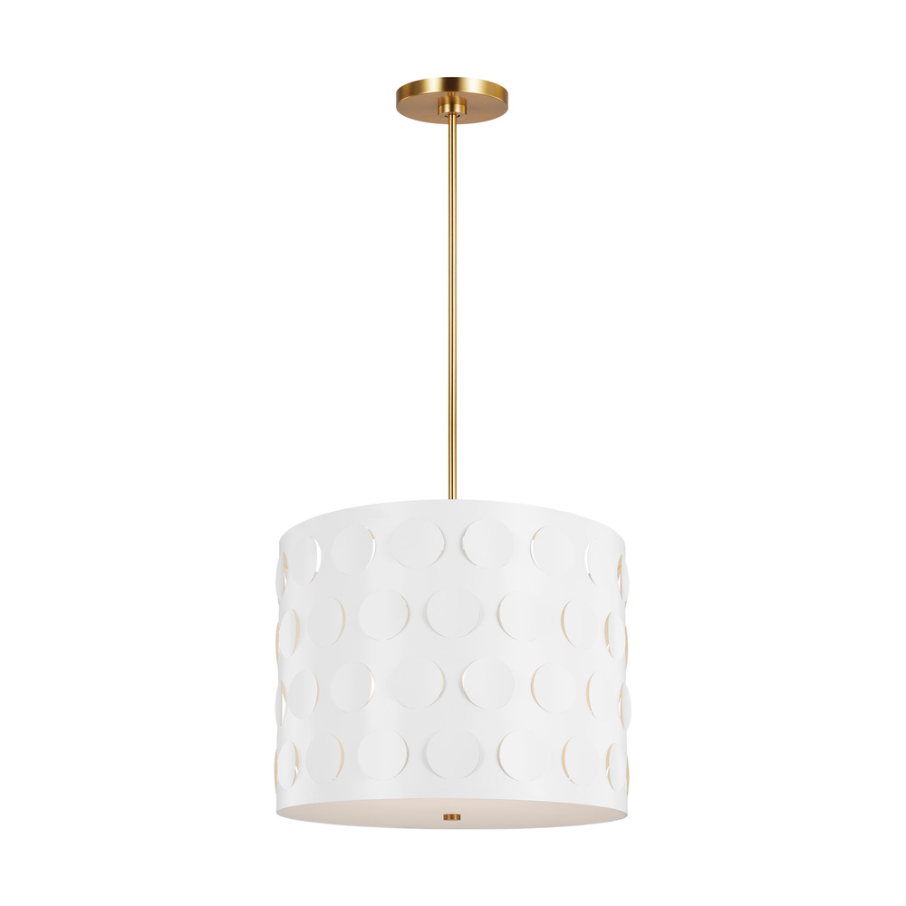 A cheerful, modern take on the classic pendant, this fixture is crafted of steel and a matte white motif design with burnished brass accents.