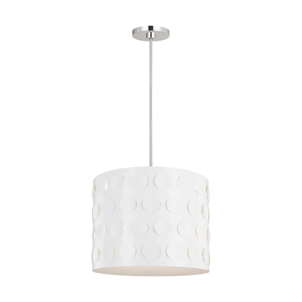 Dots are iconic to the kate spade brand—a simple and playful graphic motif. Dottie takes an iconic kate spade dot motif and cuts it into metal—creating a playful ambient light effect. A classic metal drum shade with an extra twist of perforated pattern. Use this fixture in place of any classic drum shade application, above a dining table, in a nook, or above an island.