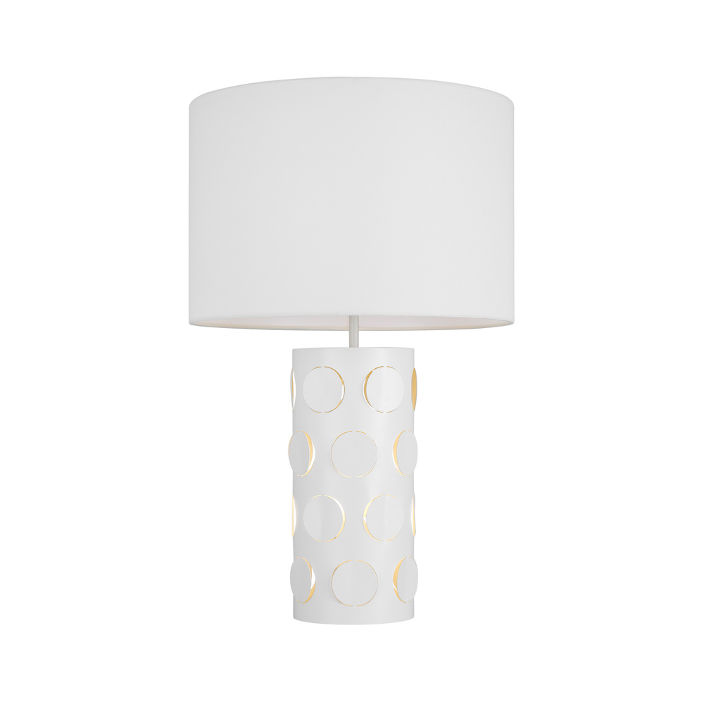 Charm and playful sophistication adorn this table lamp, available in Burnished Brass, Matte White and Polished Nickel.