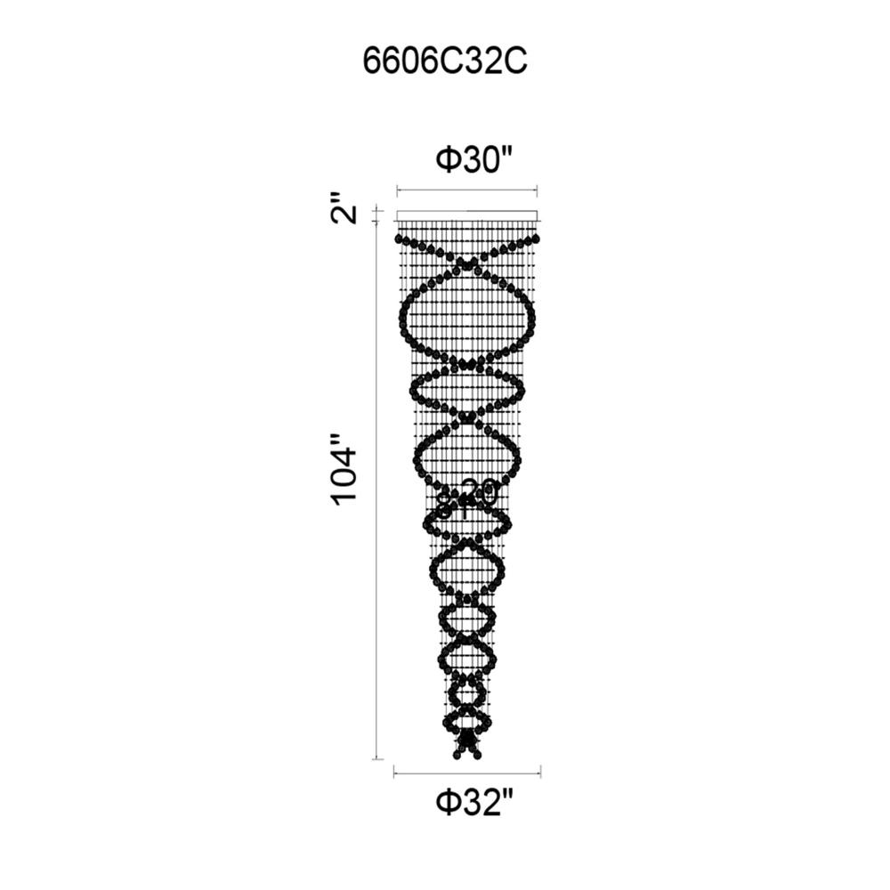 Elevate your space with the Double Spiral 32'' 12-Light Flush Mount with Chrome Finish a dazzling display of modern sophistication and elegance. Designed with two spiralling strands of premium clear crystals and a see-through curtain of delicate crystal strings, this chandelier offers a visually captivating play of light and texture. Its expansive 32'' size and 12-light design make it a powerful focal point for any large, open area. Ideal for staircases, foyers, or grand living rooms, this luxury flush mount is your answer to upscale interior lighting. Finish: Chrome Light Count: 12 Light Source: GU10 Base (Bulbs Not Included) Adjustable Hanging Height: N/A (Flush Mount) Material: Metal, Crystal Style: Modern / Glam / Luxe